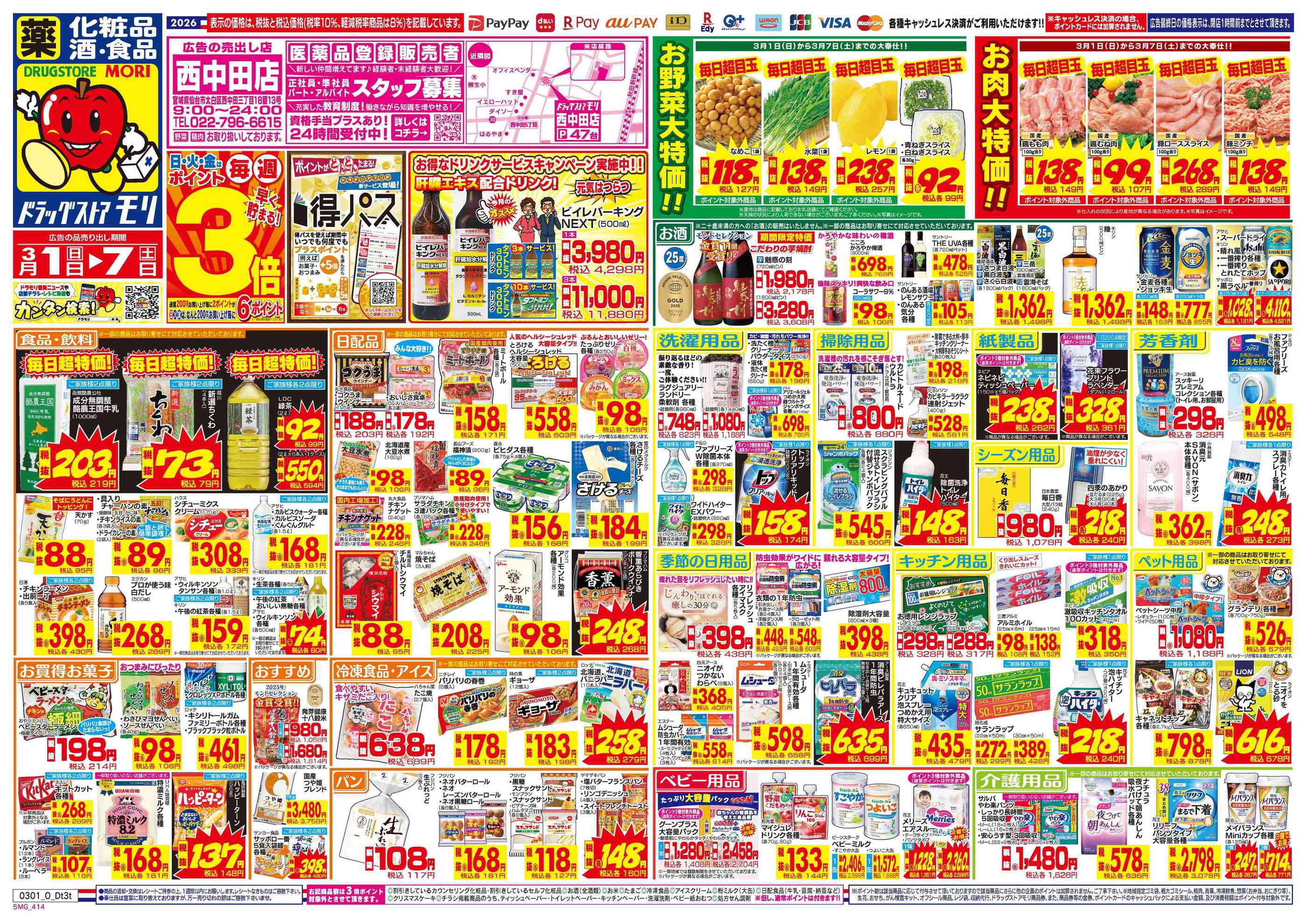 ドラッグストアモリ西中田店今週のチラシ(2026年2月23日〜3月1日)