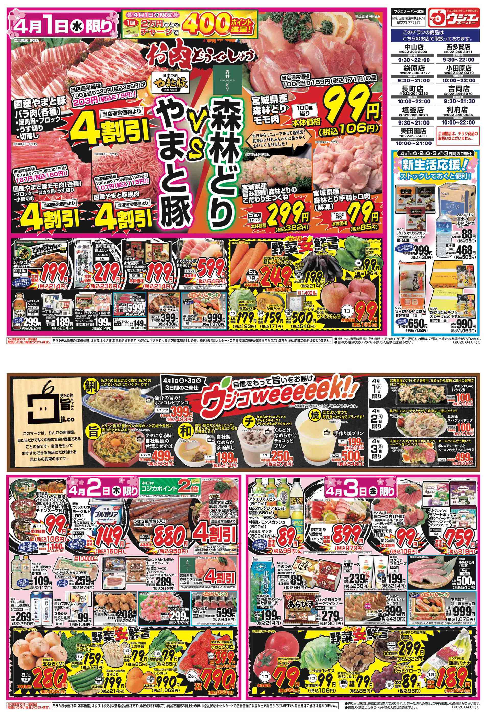 ウジエスーパー長町店今週のチラシ(2026年3月30日〜4月5日)