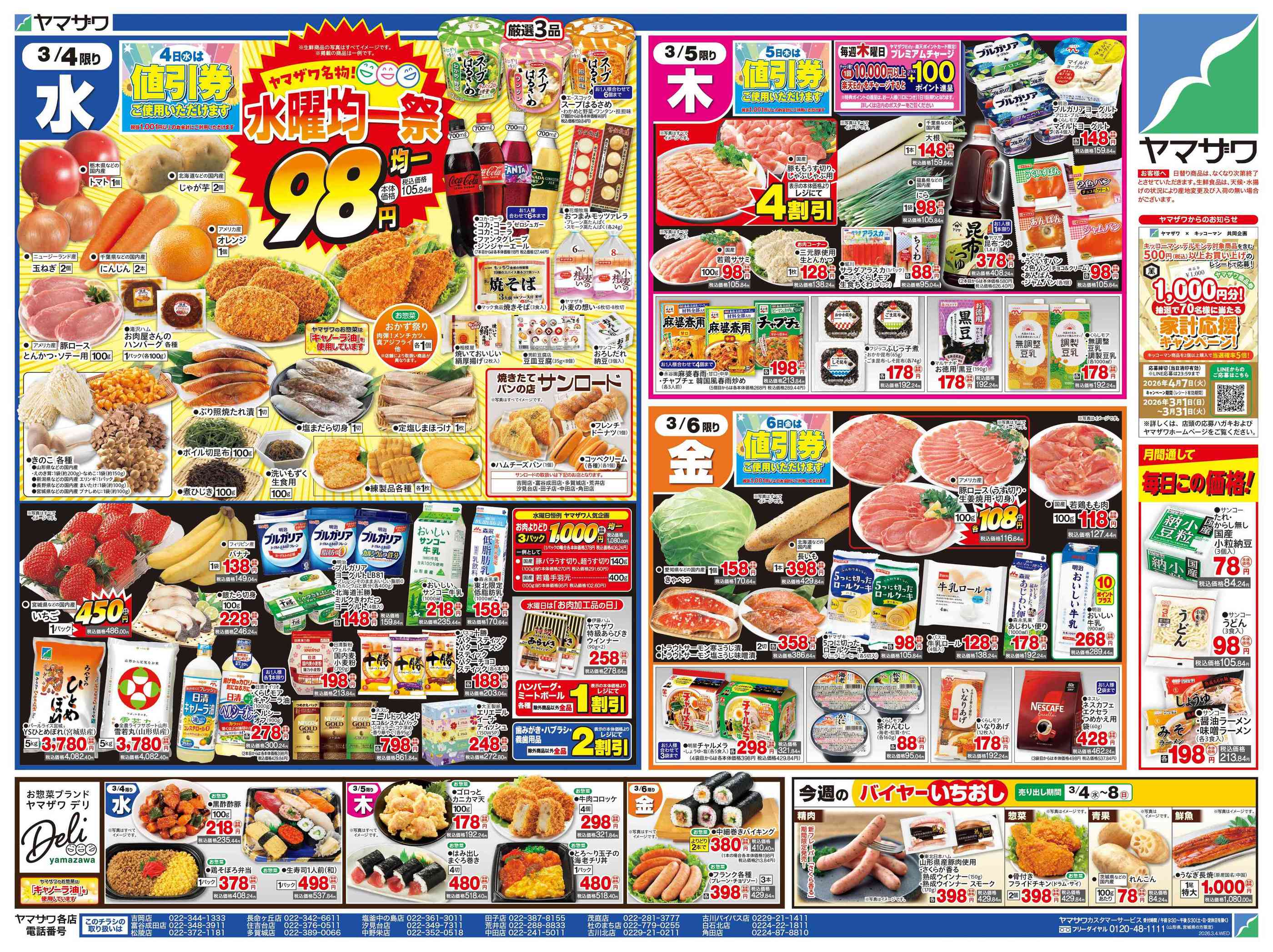 ヤマザワ長命ヶ丘店今週のチラシ(2026年3月2日〜3月8日)