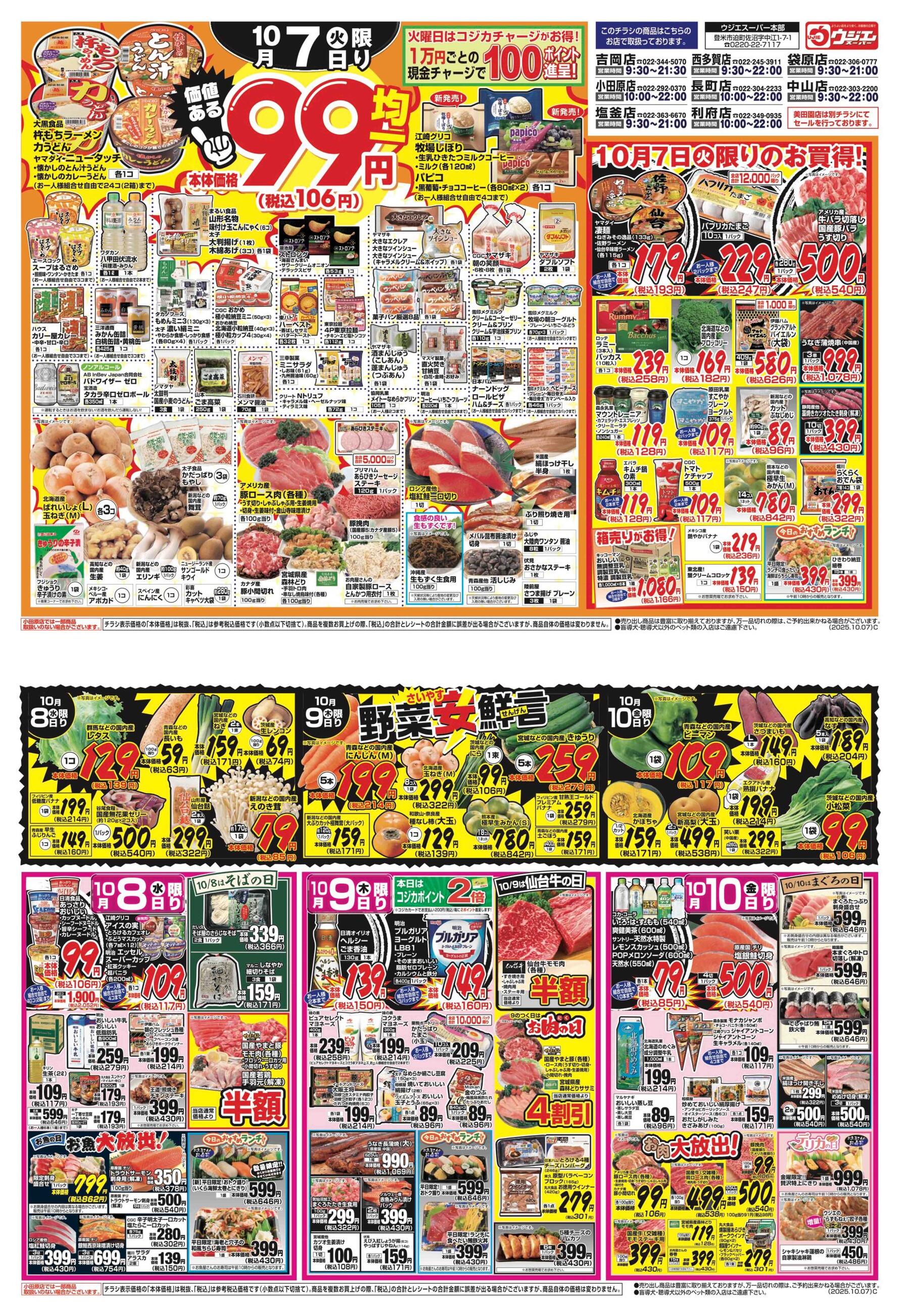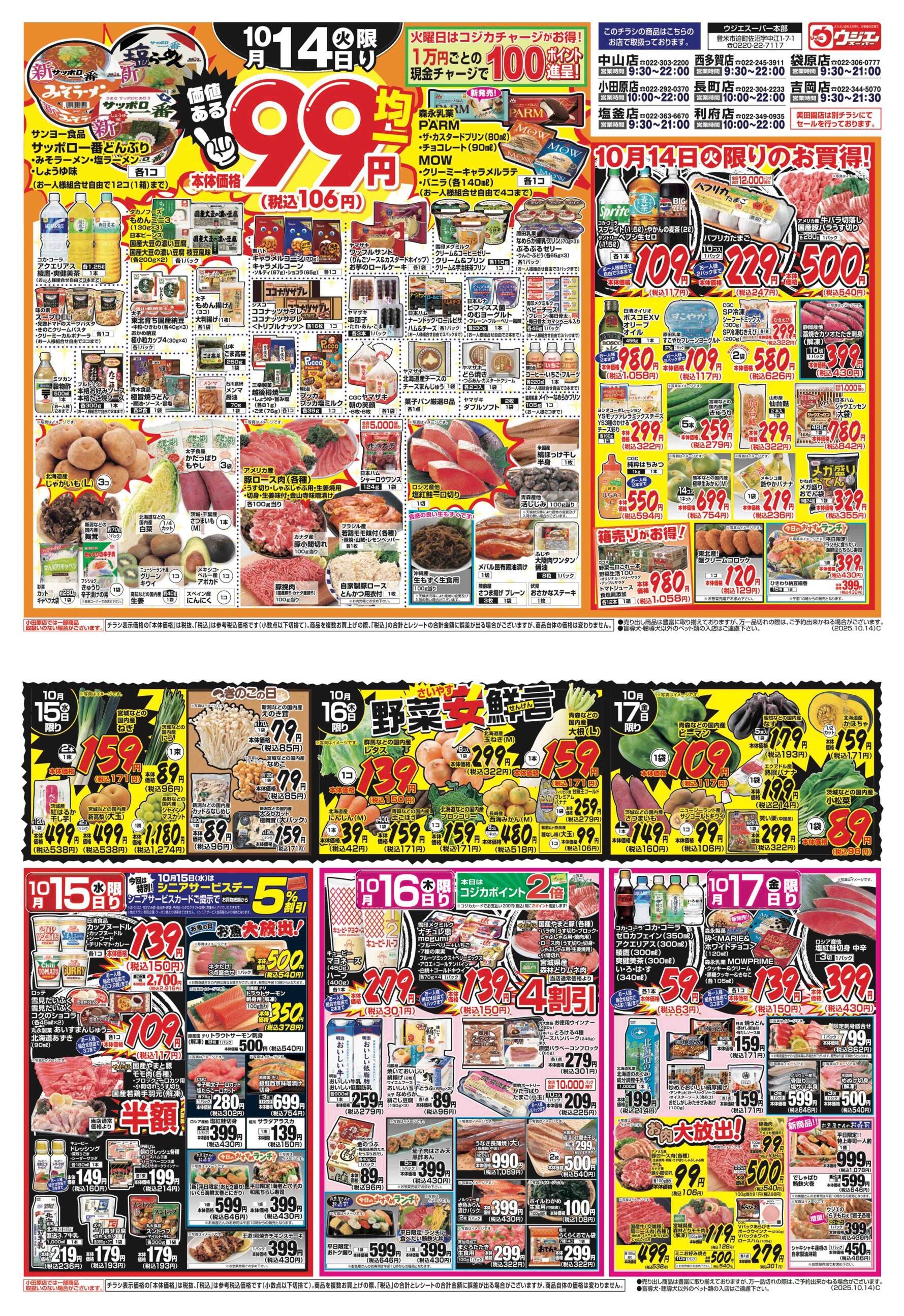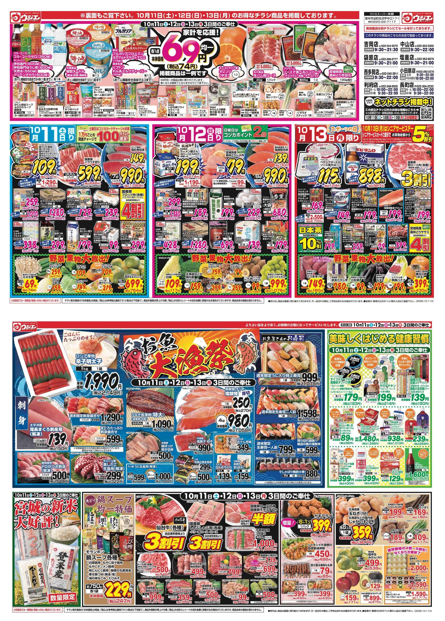 ウジエスーパー袋原店今週のチラシ(2025年10月13日〜10月19日)