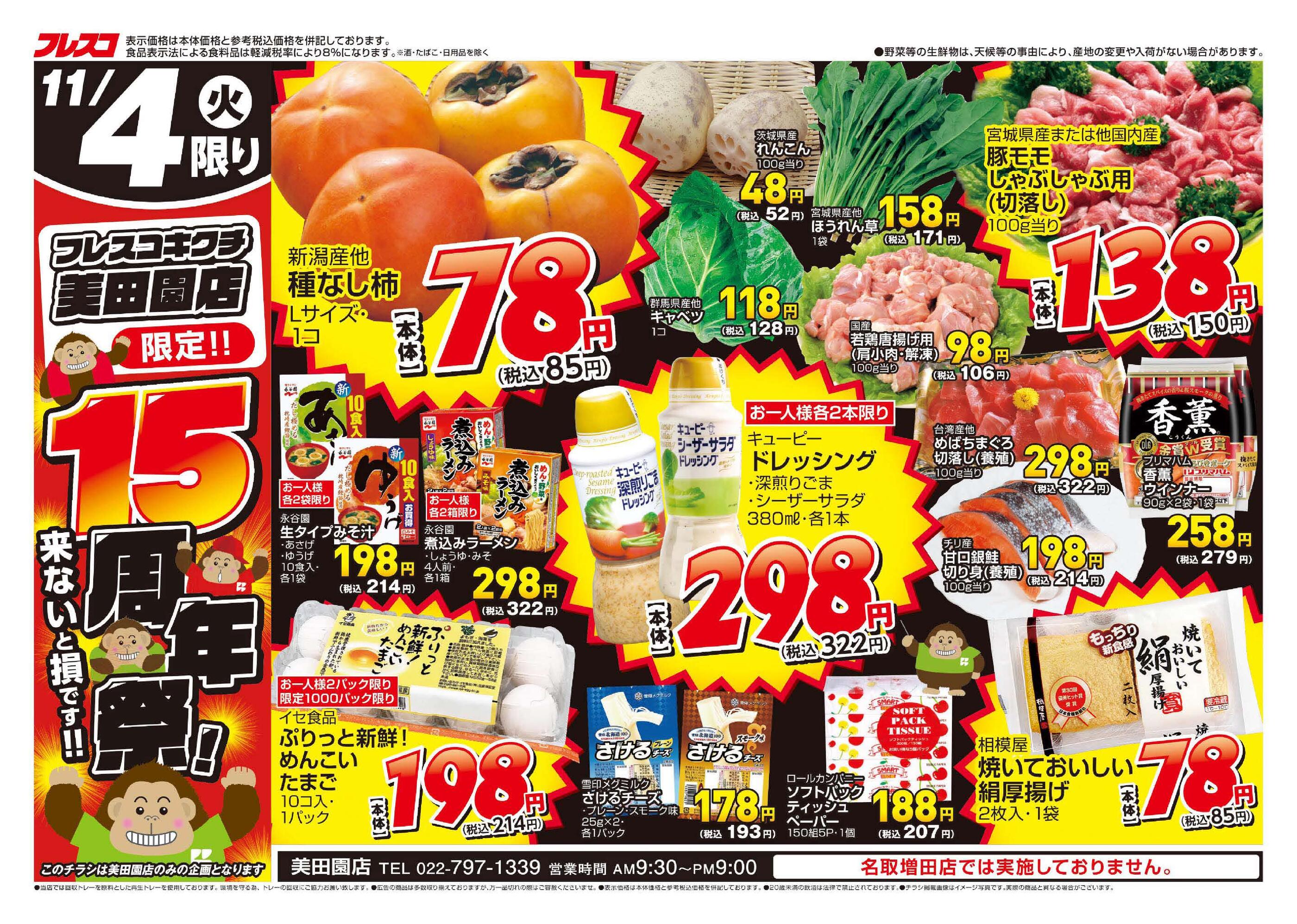 フレスコキクチ美田園店今週のチラシ(2025年11月10日〜11月16日)