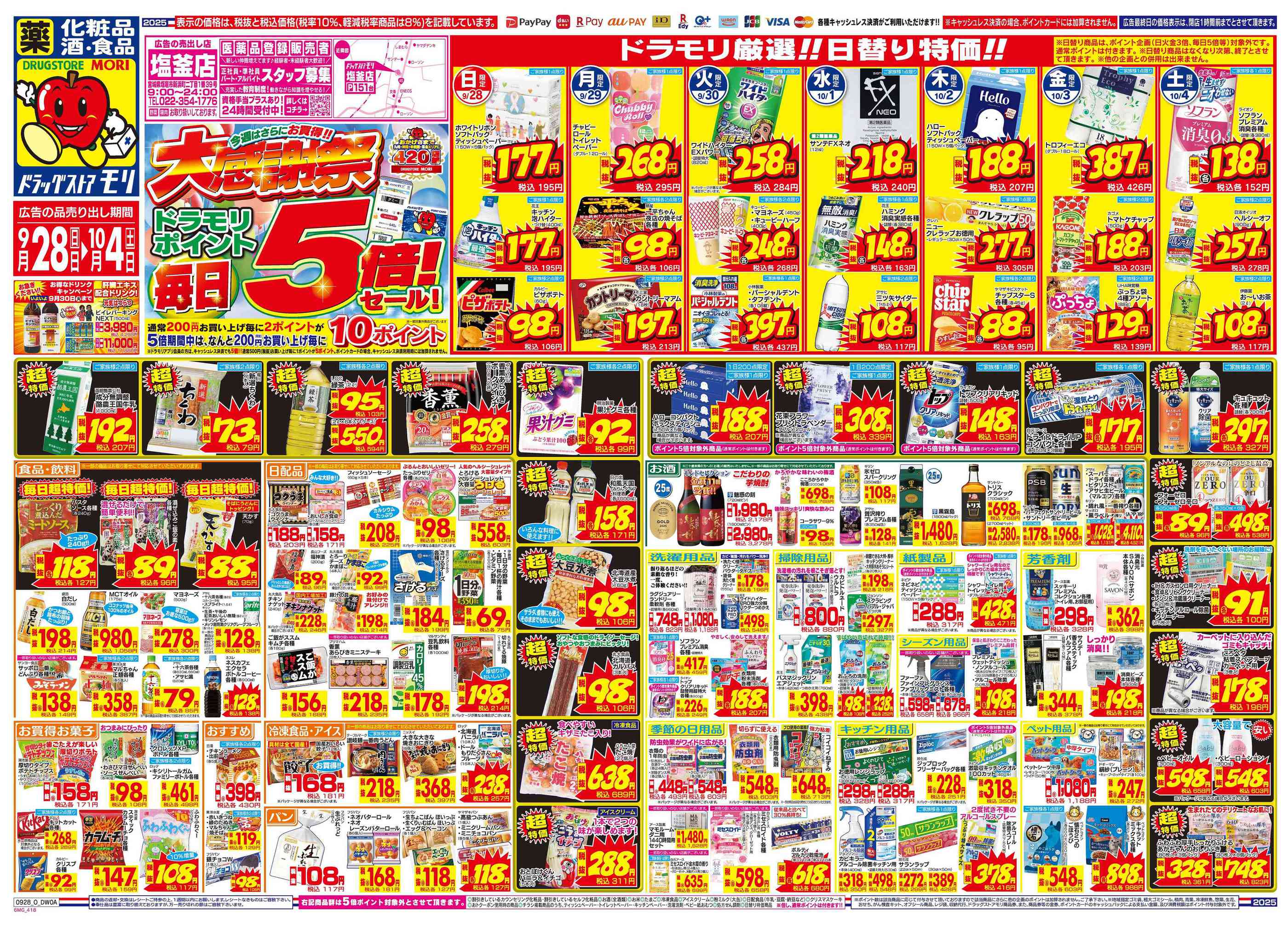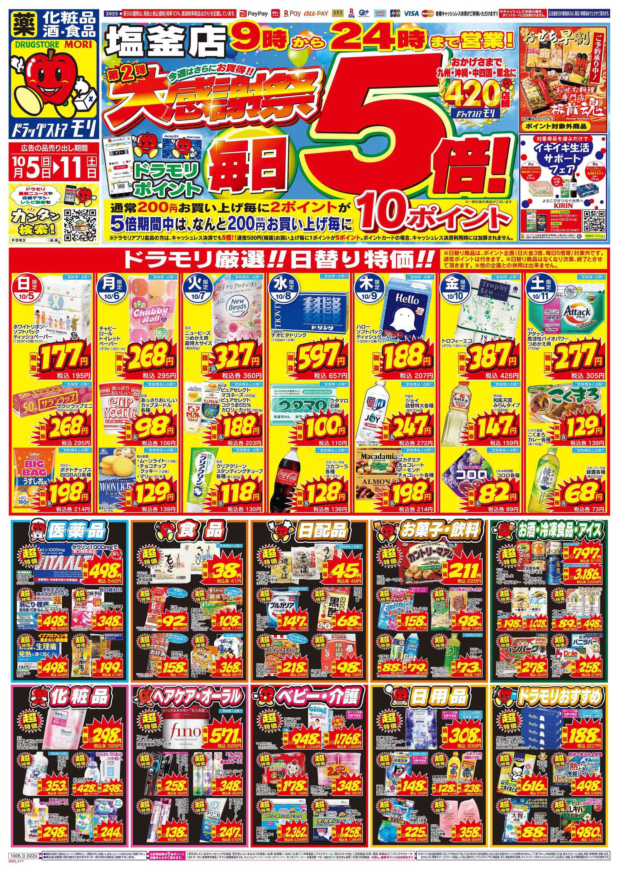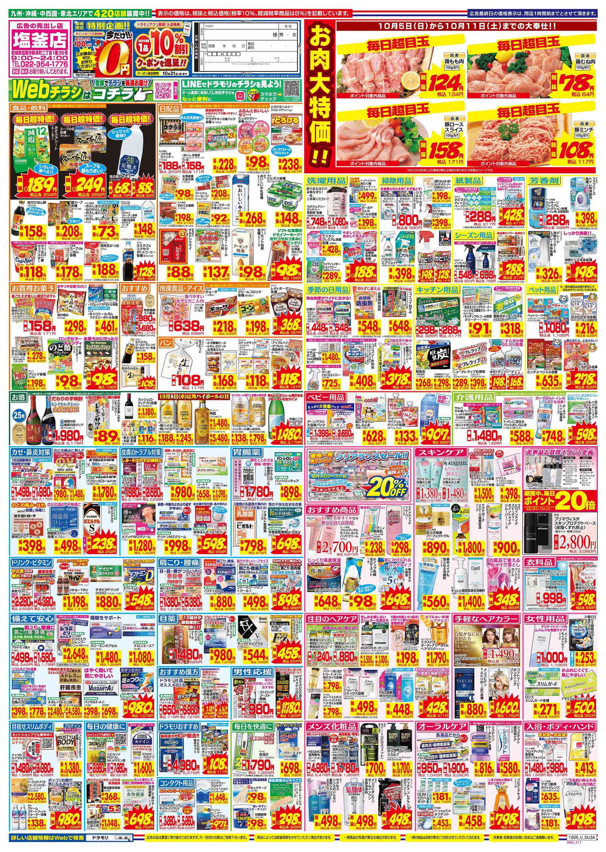 ドラッグストアモリ塩釜店今週のチラシ(2025年10月6日〜10月12日)