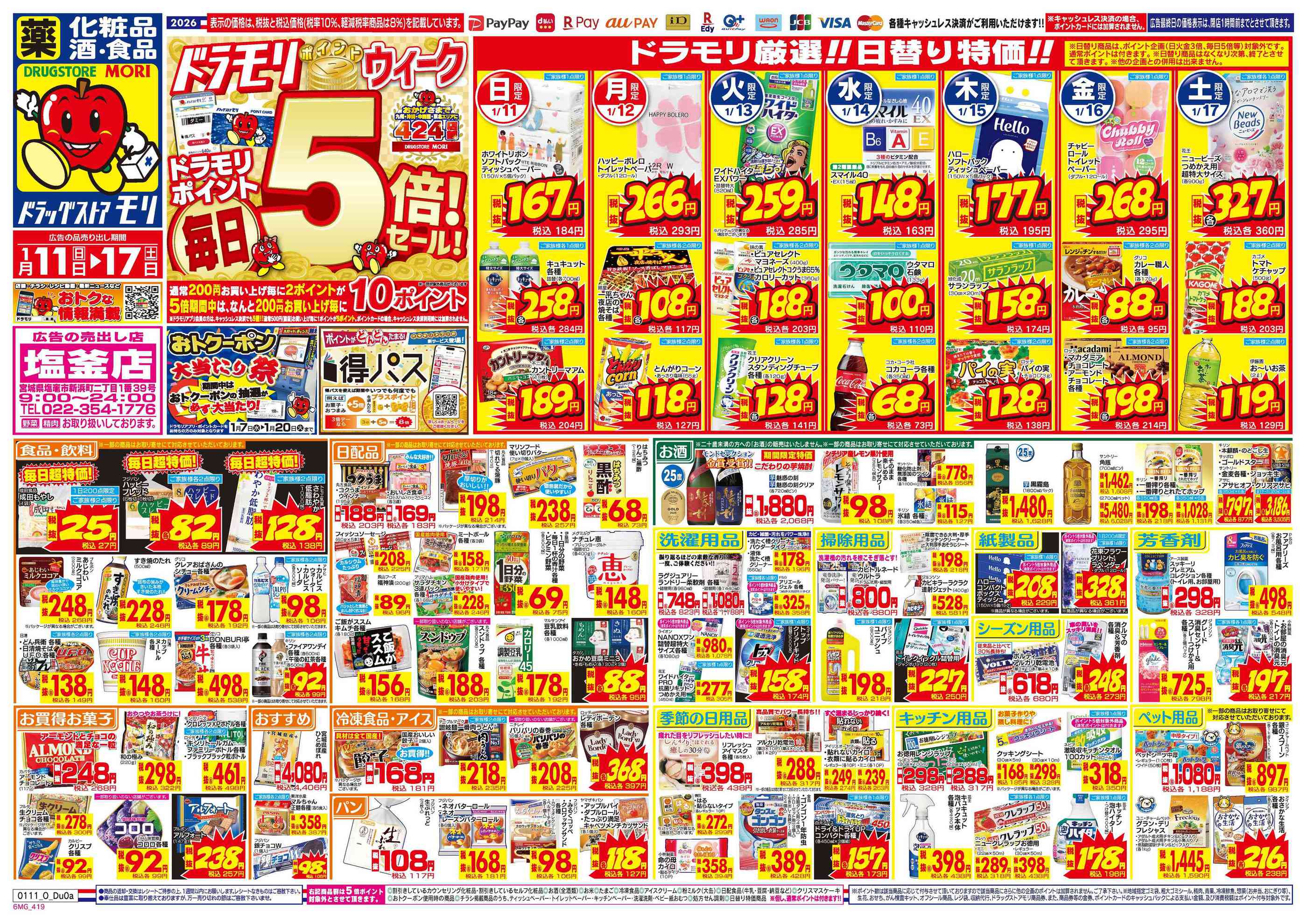 ドラッグストアモリ塩釜店今週のチラシ(2026年1月5日〜1月11日)