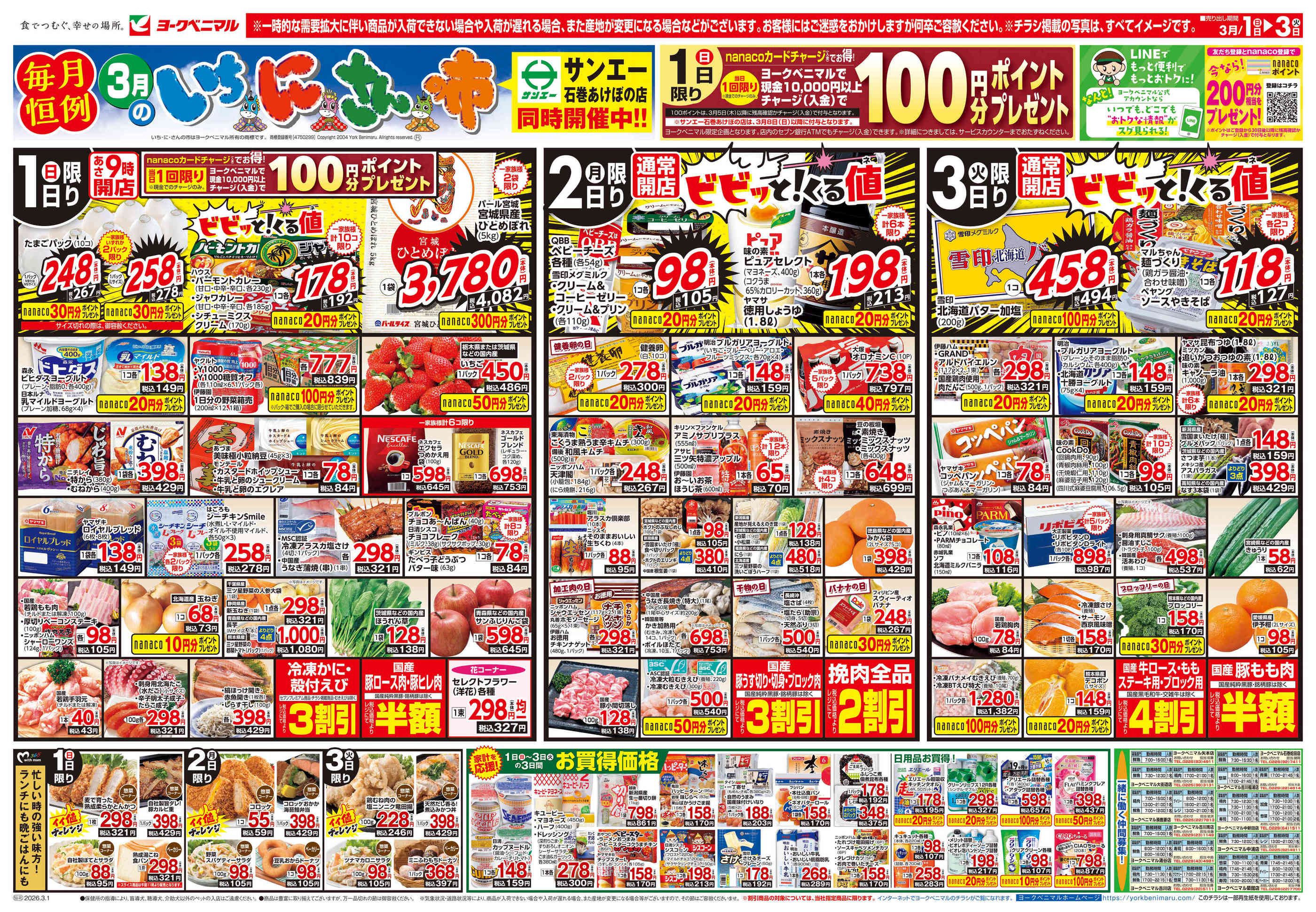 ヨークベニマル古川中里店今週のチラシ(2026年3月2日〜3月8日)