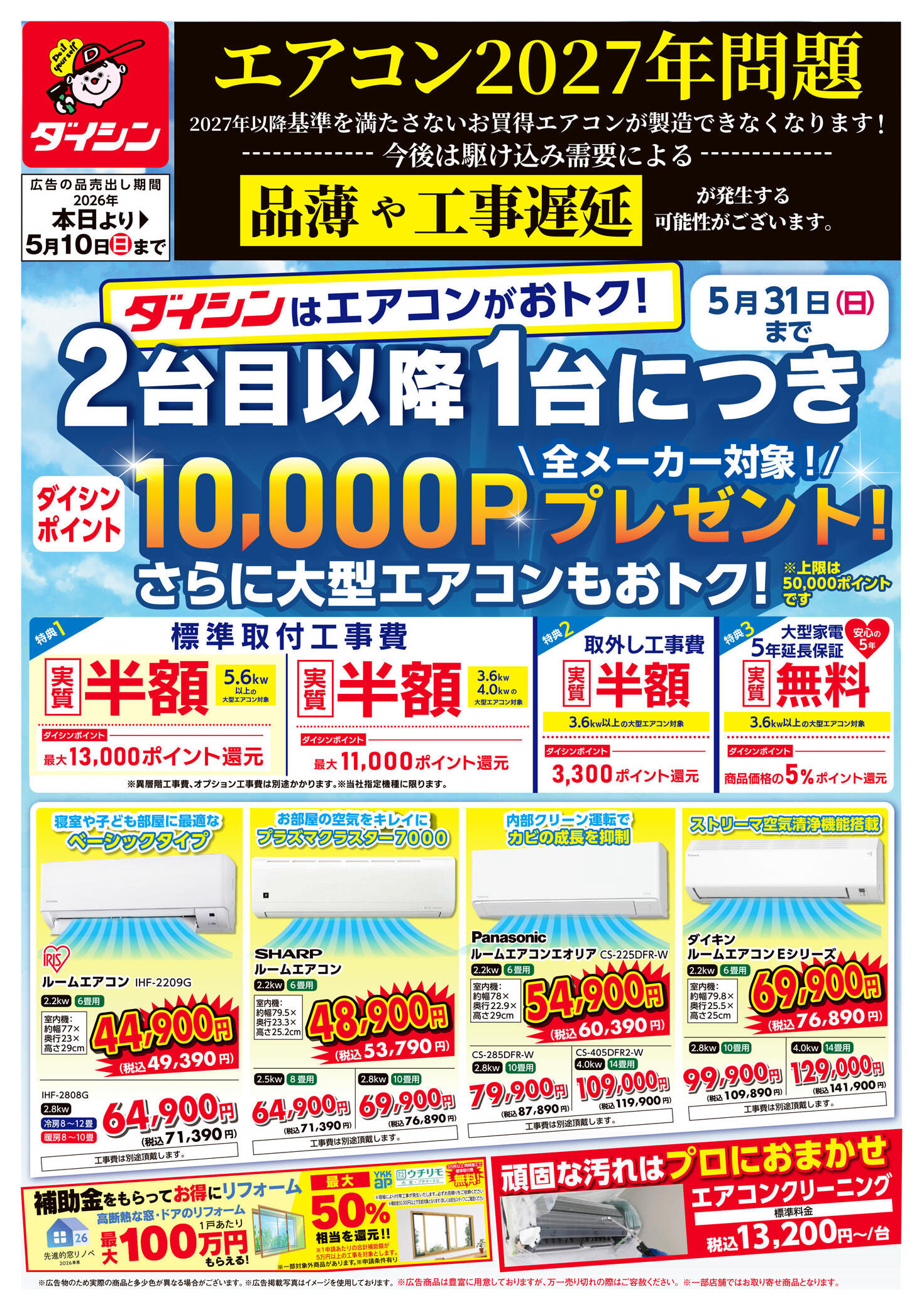 - 2026年3月1日〜5月10日までエアコン買うならダイシンがおトク! (1枚)