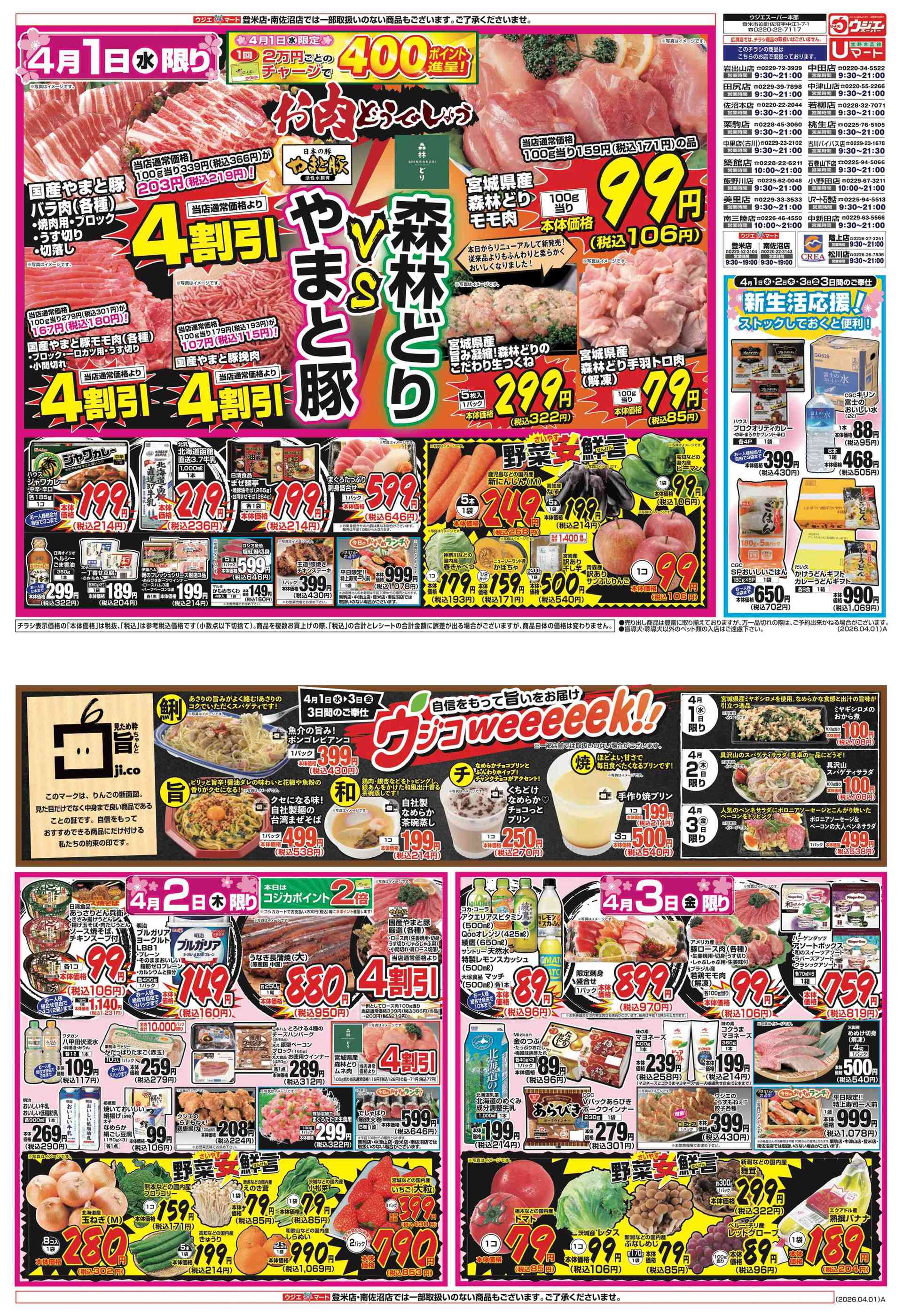 ウジエスーパー田尻店今週のチラシ(2026年3月30日〜4月5日)