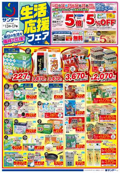 特売やセール情報など最新のチラシを掲載中。(4種類、5枚のチラシを掲載しています)