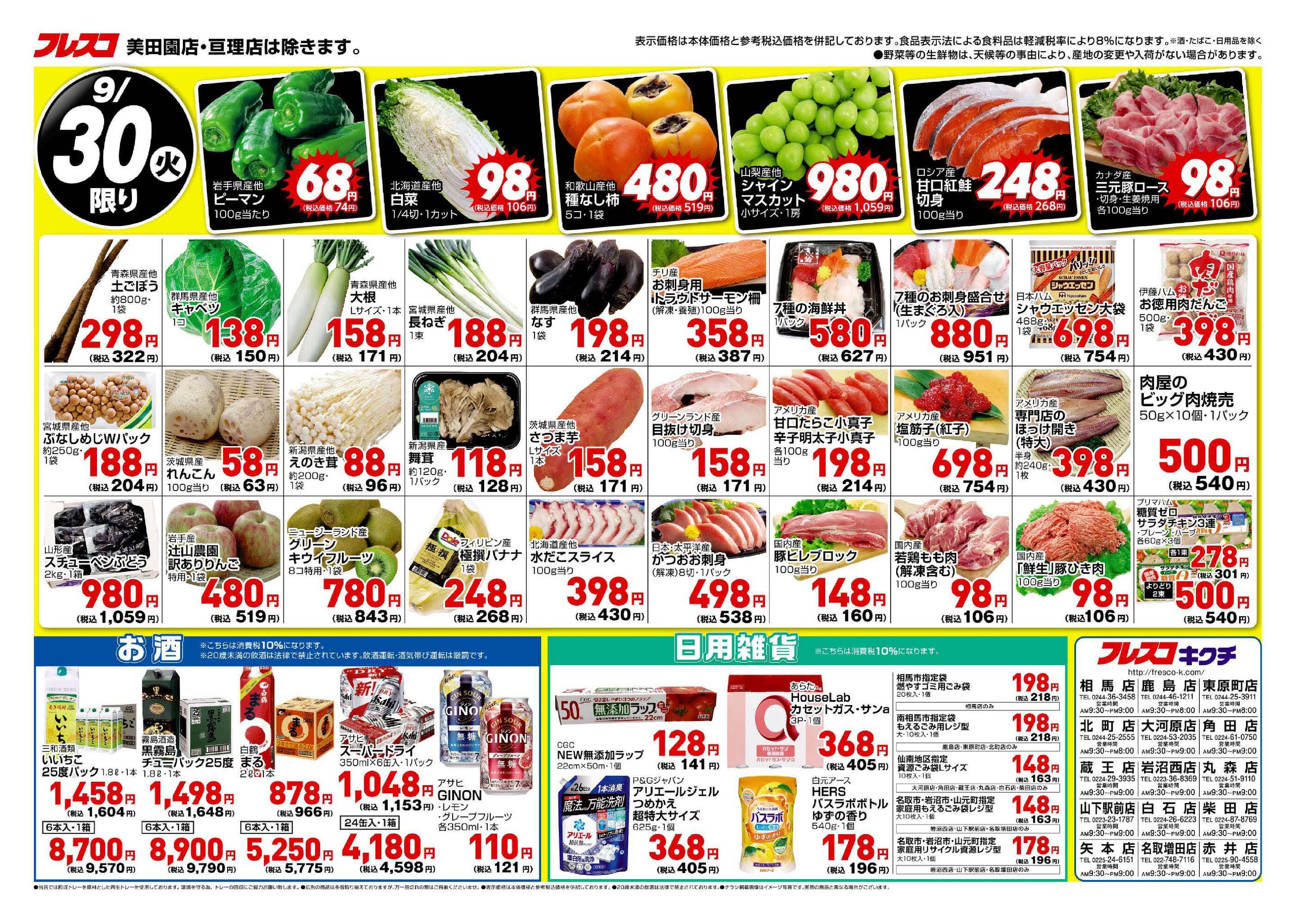 フレスコキクチ大河原店今週のチラシ(2025年9月29日〜10月5日)