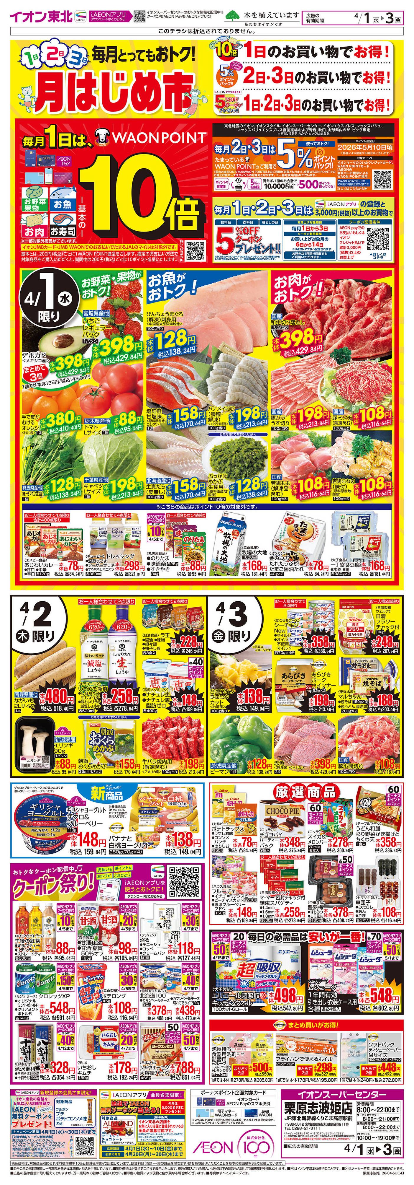 イオンスーパーセンター栗原志波姫店今週のチラシ(2026年3月30日〜4月5日)