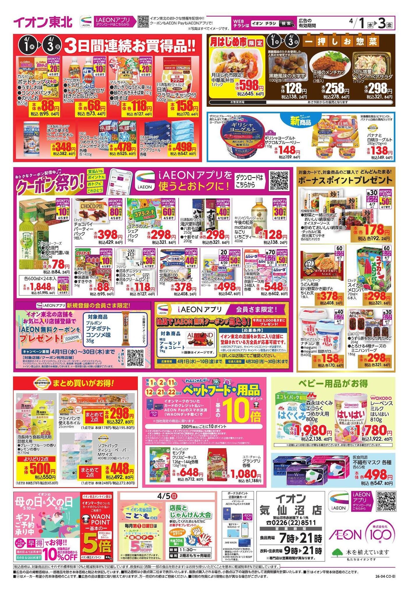 イオン気仙沼店今週のチラシ(2026年3月30日〜4月5日)