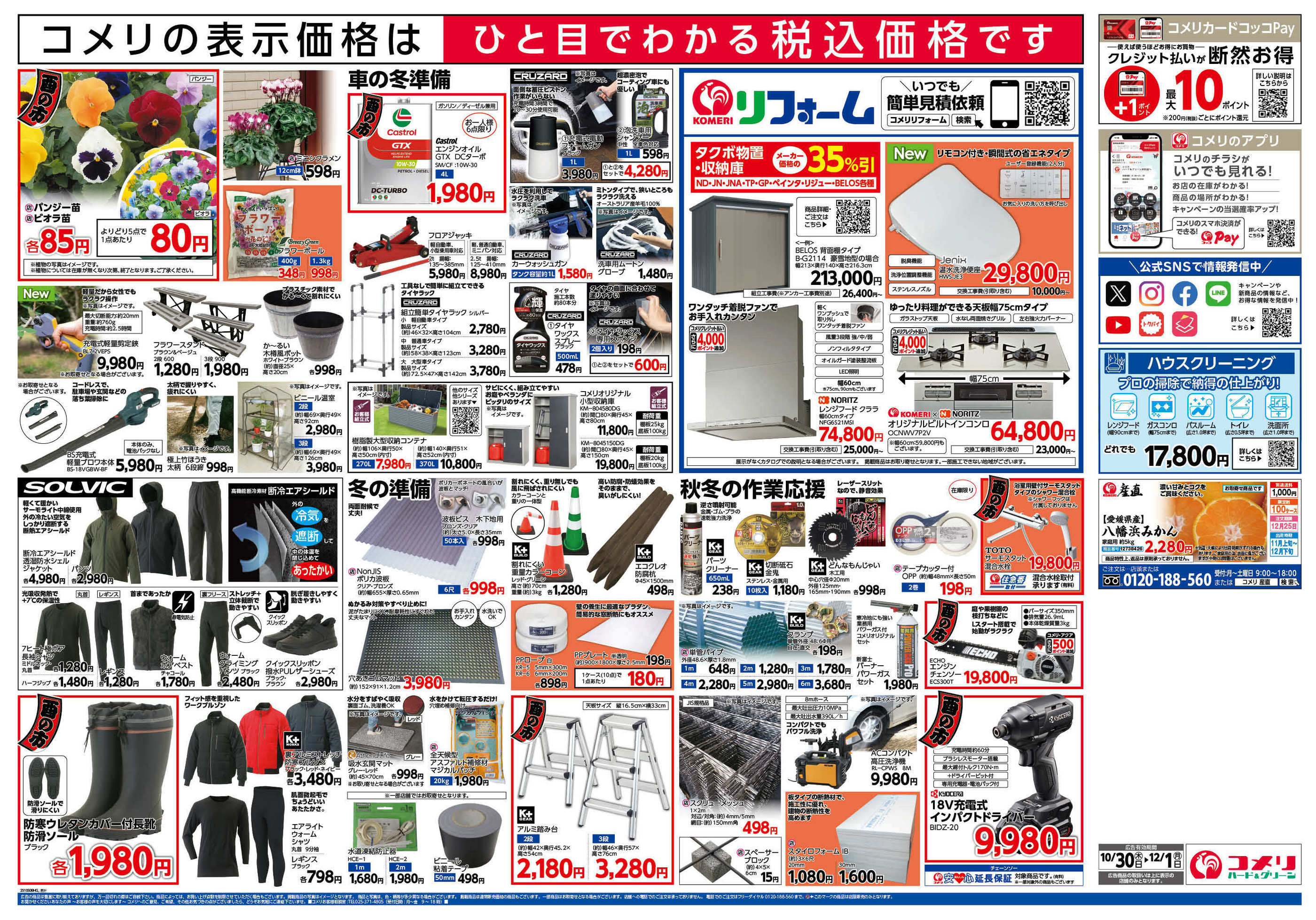コメリハード&グリーン加賀野店今週のチラシ(2025年10月27日〜11月2日)