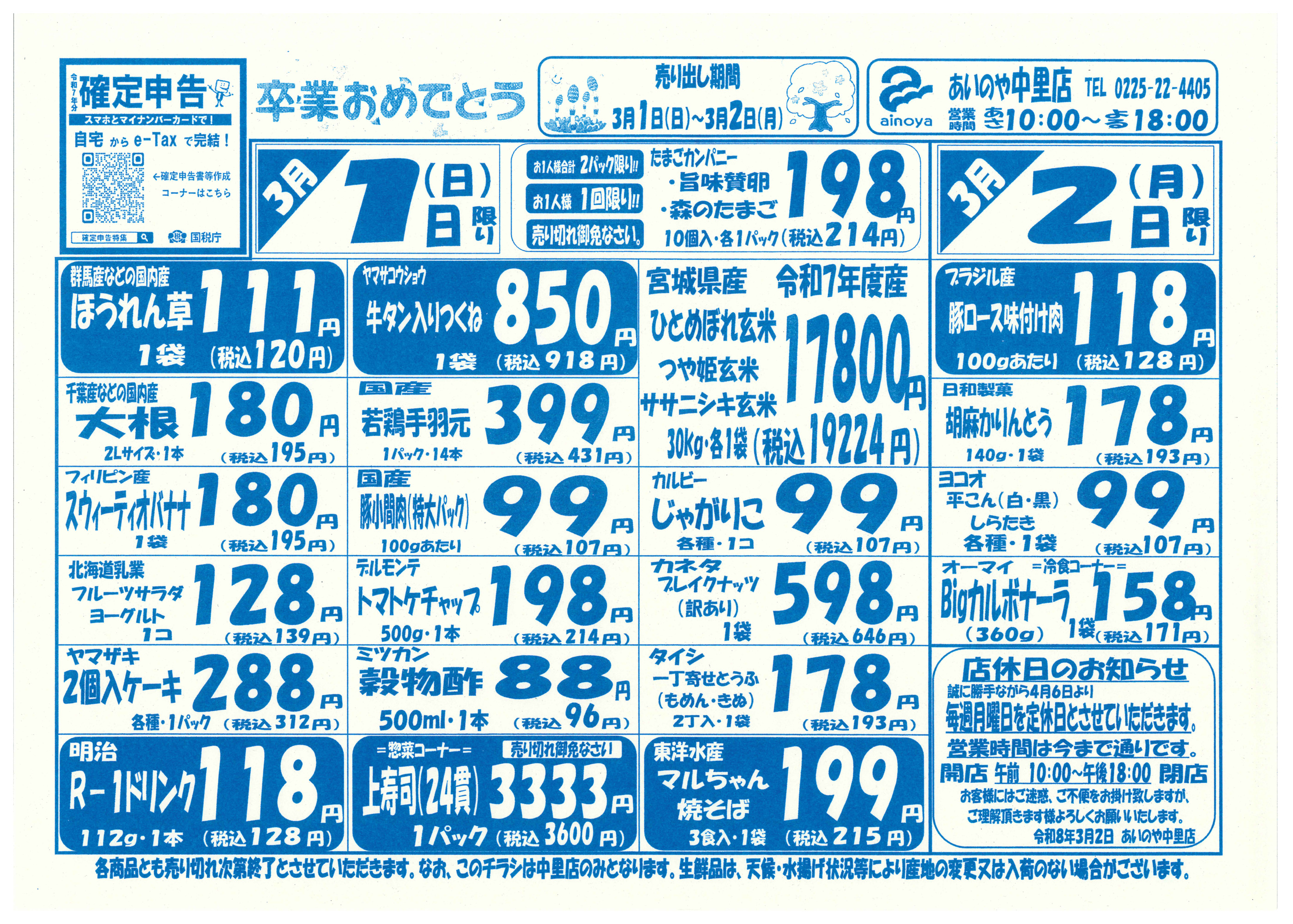 あいのや中里店今週のチラシ(2026年3月2日〜3月8日)