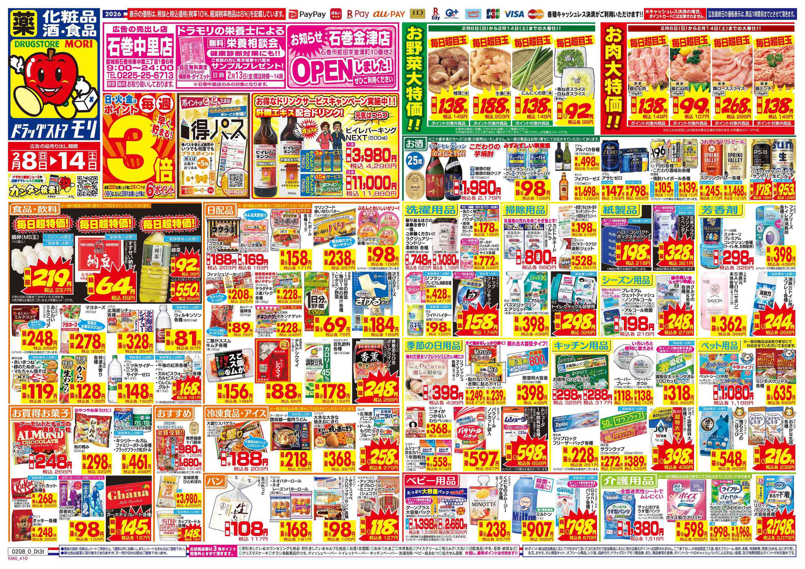 ドラッグストアモリ石巻中里店今週のチラシ(2026年2月9日〜2月15日)