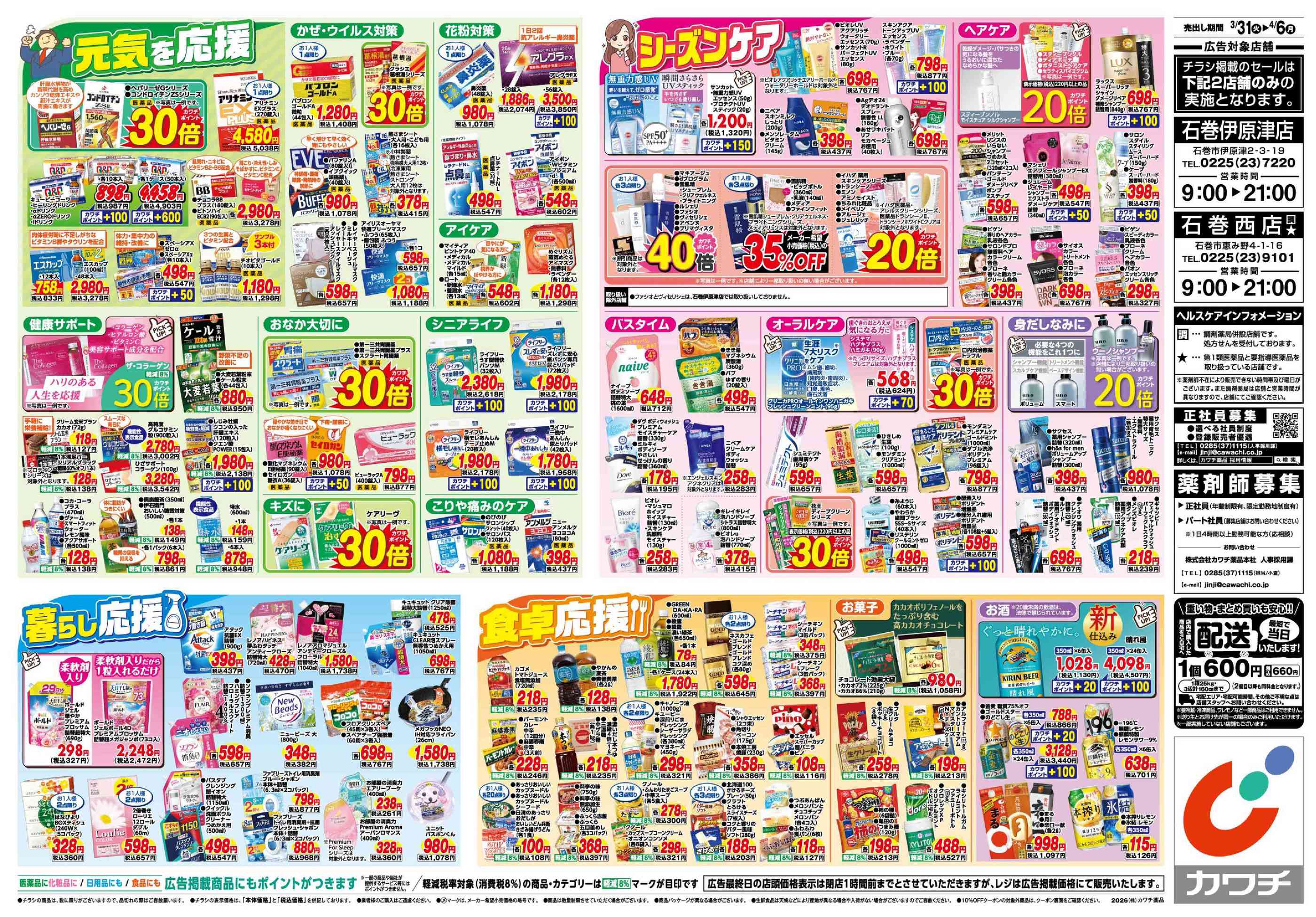 カワチ薬品石巻西店今週のチラシ(2026年3月30日〜4月5日)