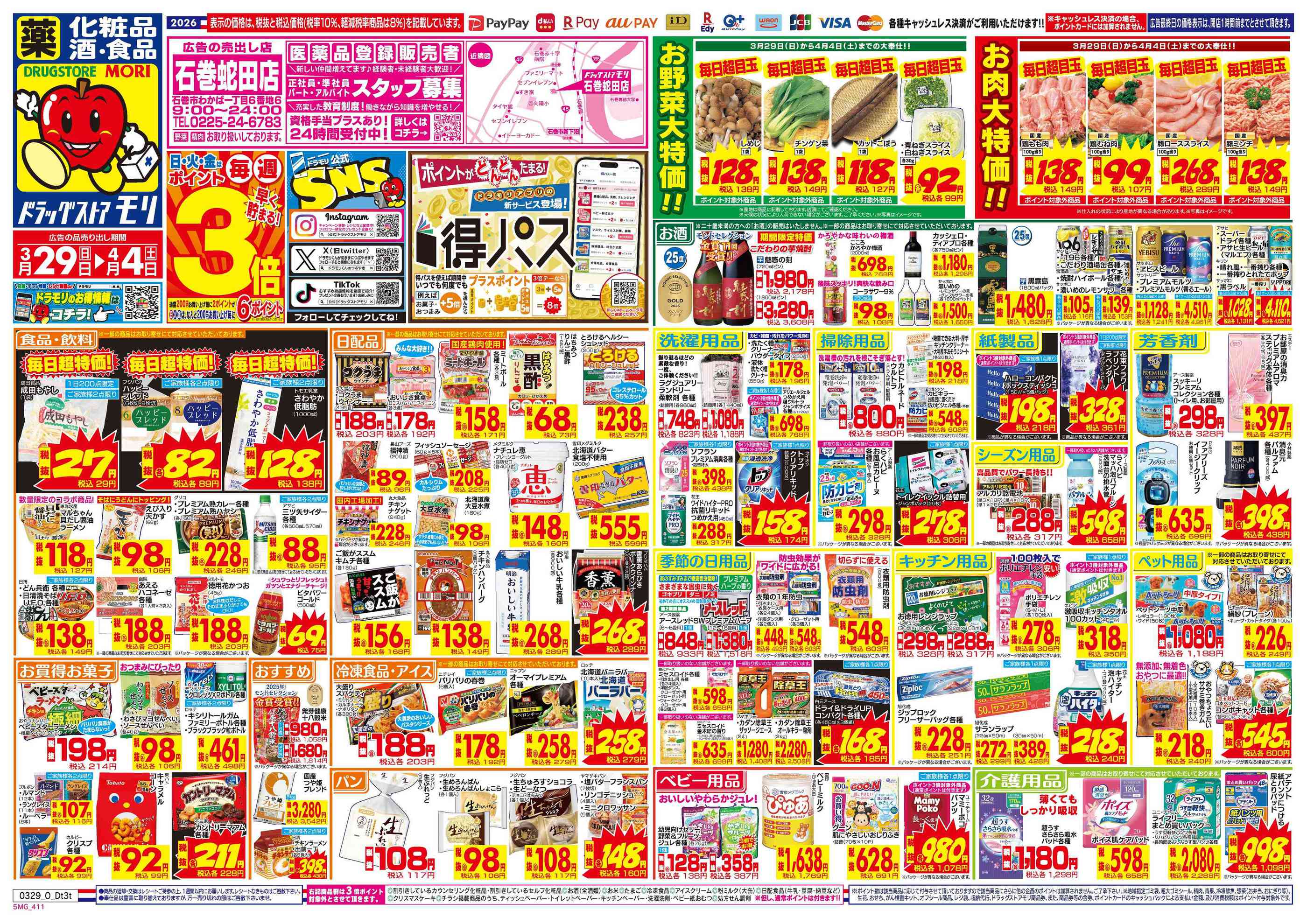 ドラッグストアモリ石巻蛇田店今週のチラシ(2026年3月30日〜4月5日)