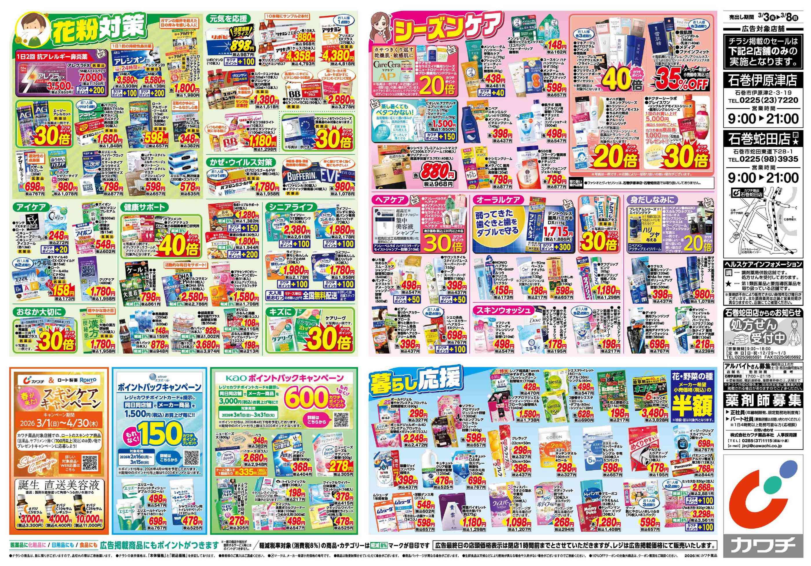 カワチ薬品石巻蛇田店今週のチラシ(2026年3月2日〜3月8日)