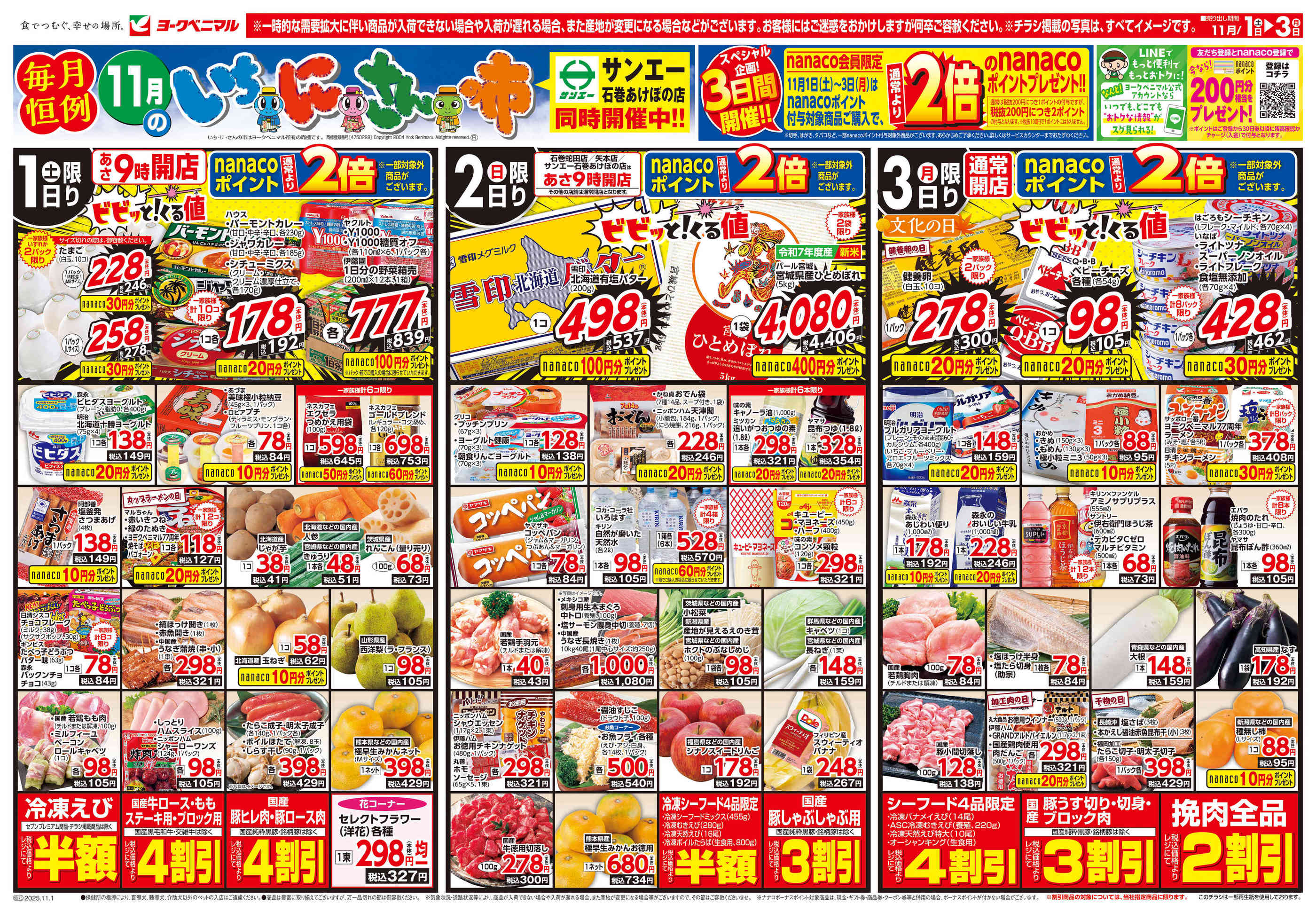ヨークベニマル石巻中里店今週のチラシ(2025年11月3日〜11月9日)