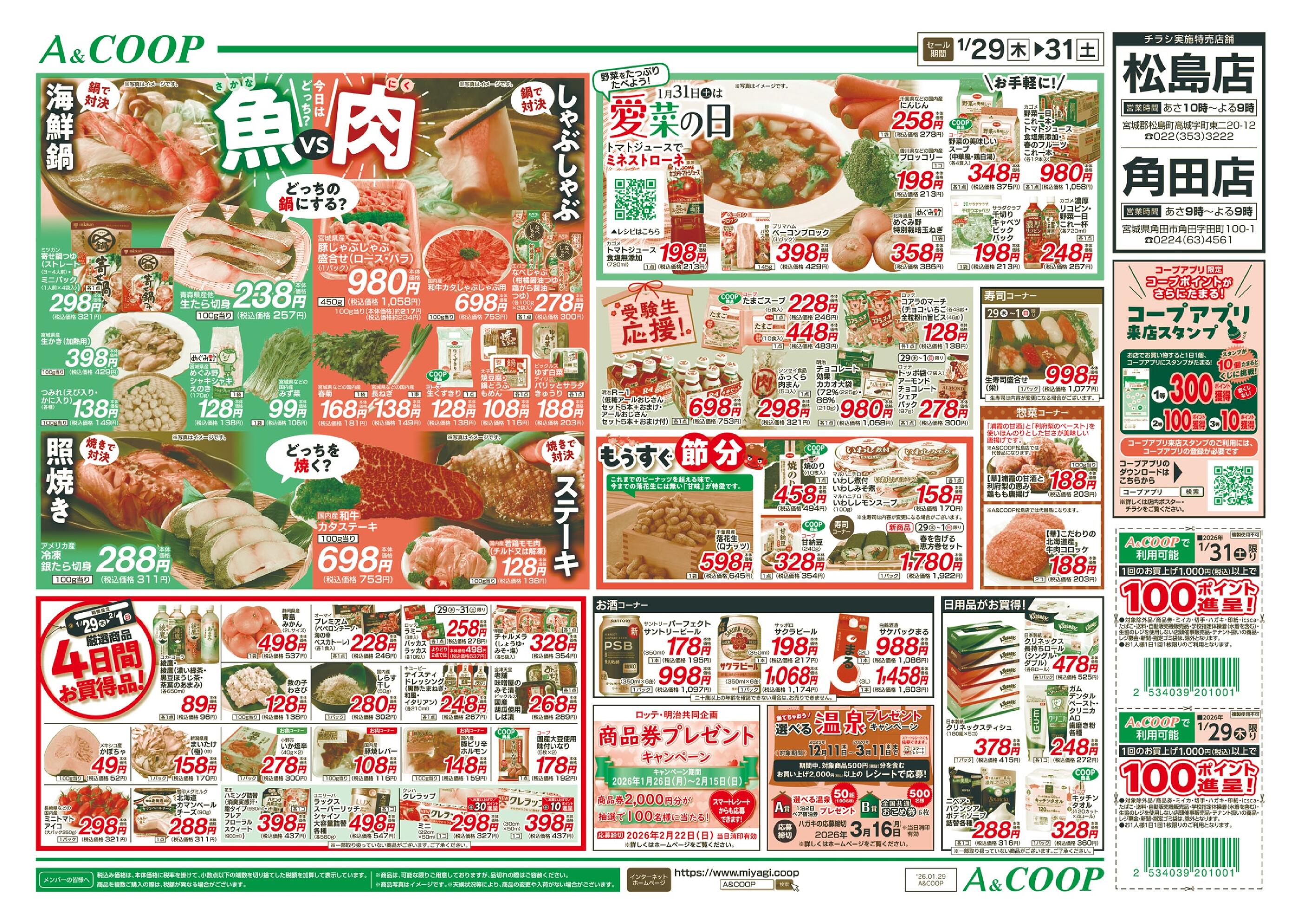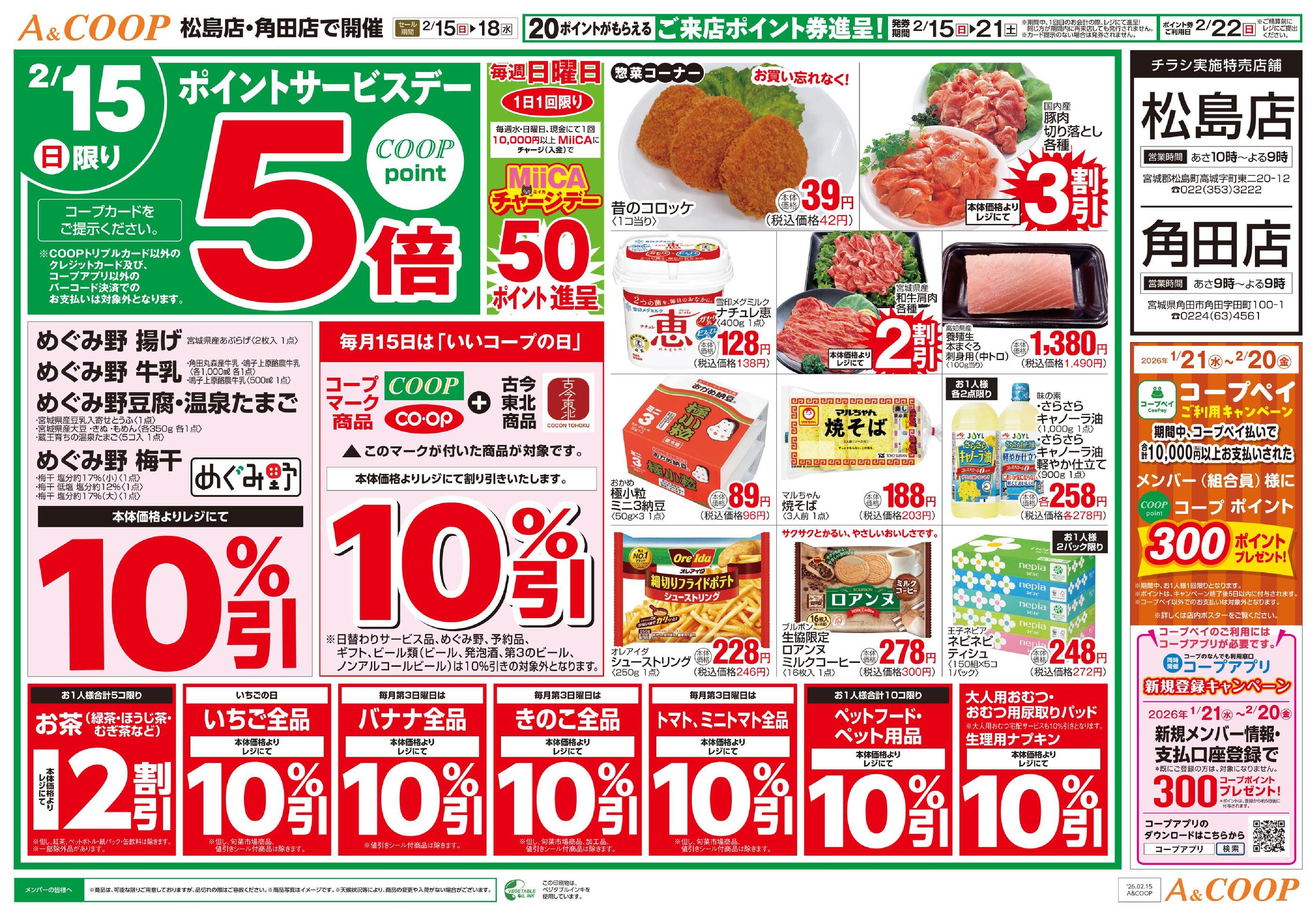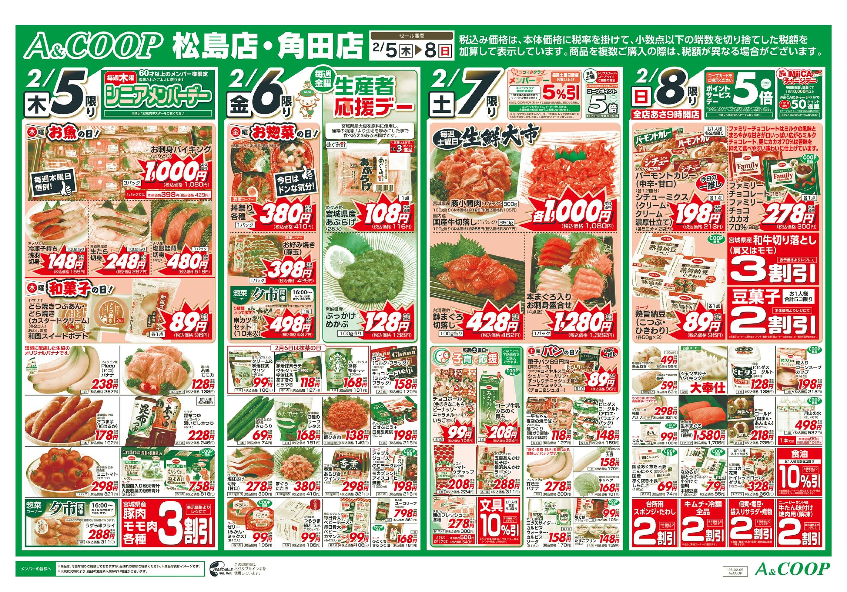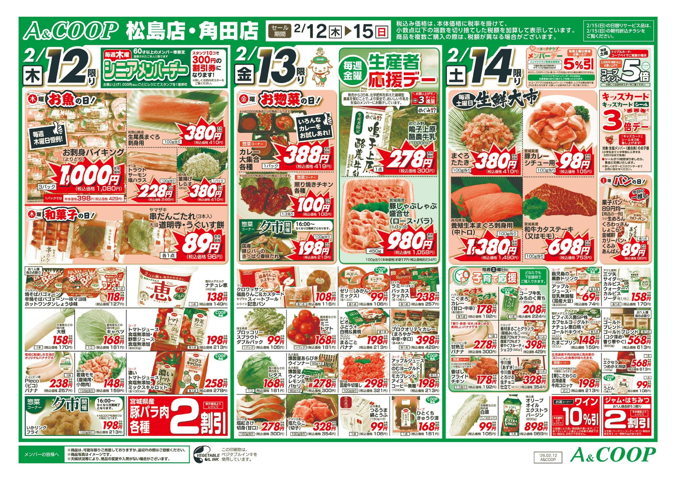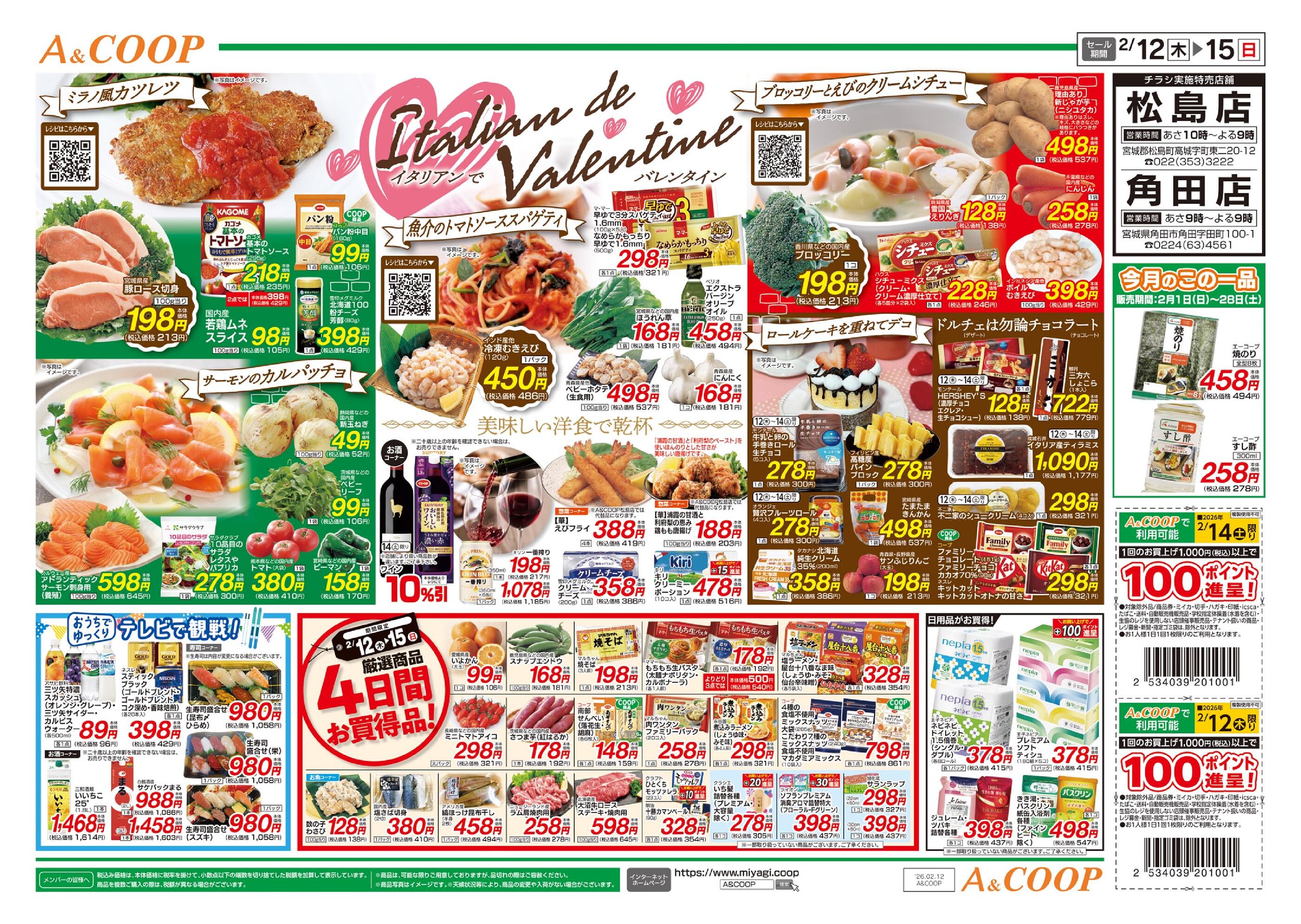 A&COOP角田店今週のチラシ(2026年2月9日〜2月15日)