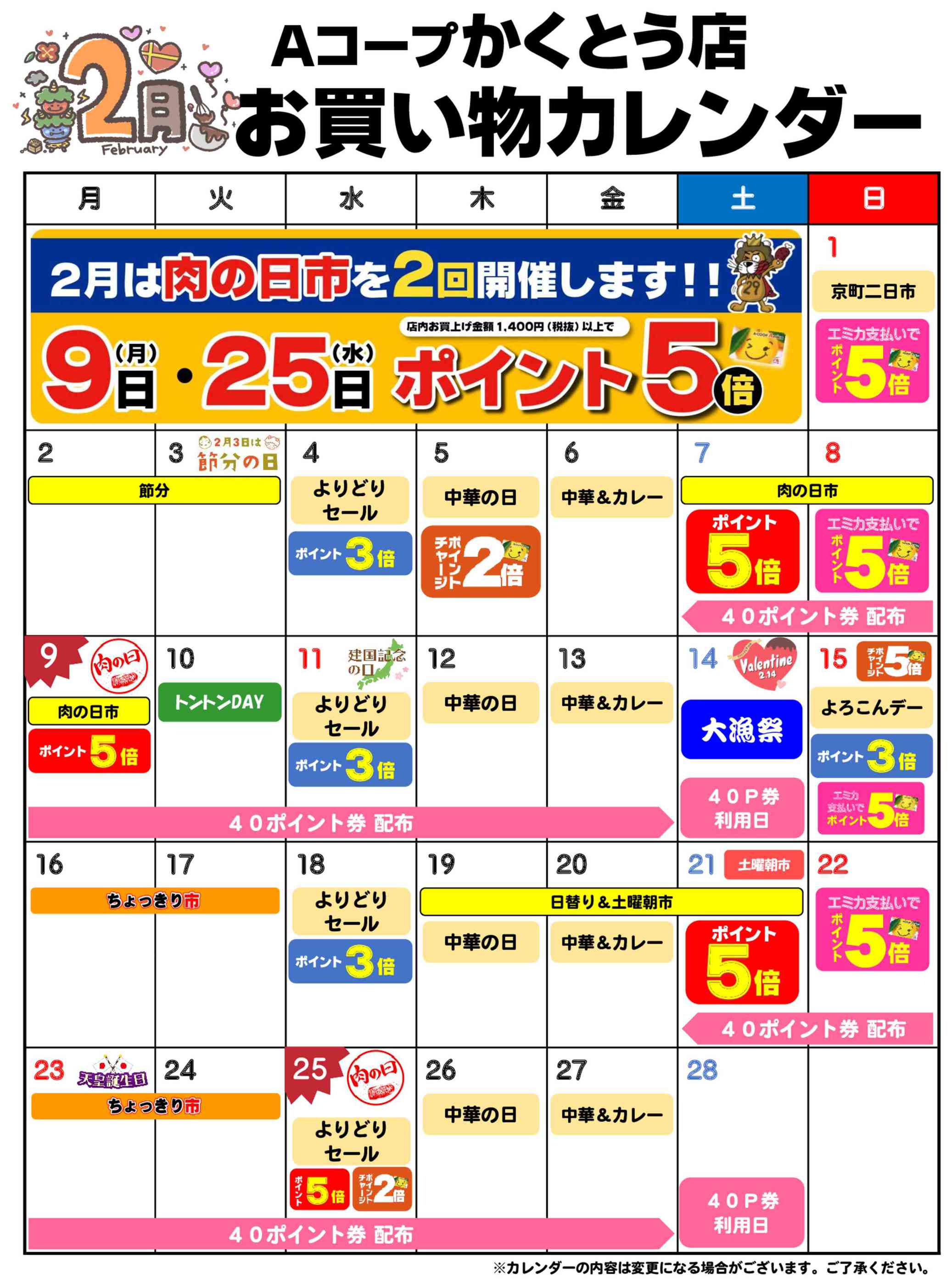 Aコープかくとう店今週のチラシ(2026年2月9日〜2月15日)
