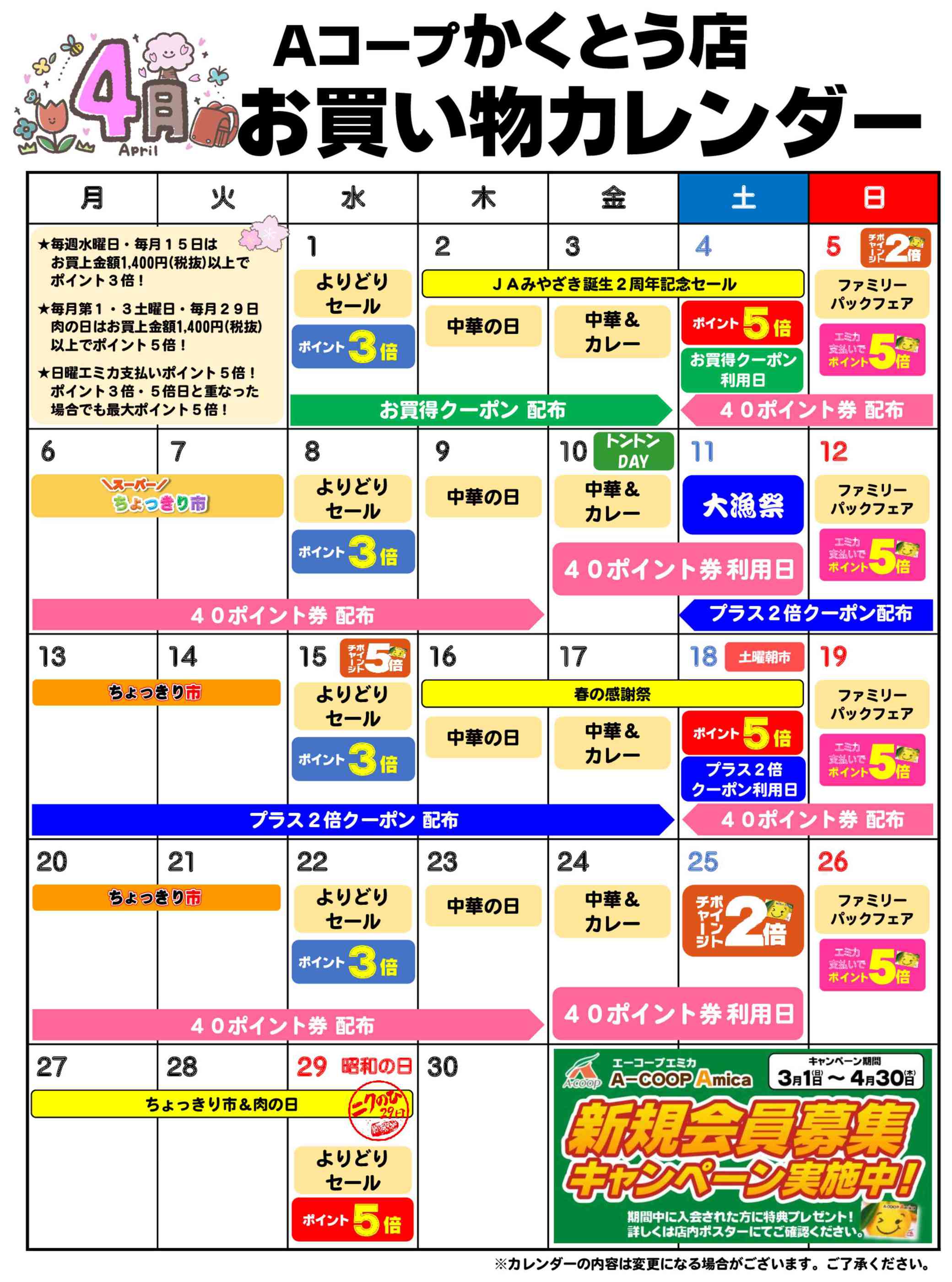 Aコープかくとう店今週のチラシ(2026年3月30日〜4月5日)