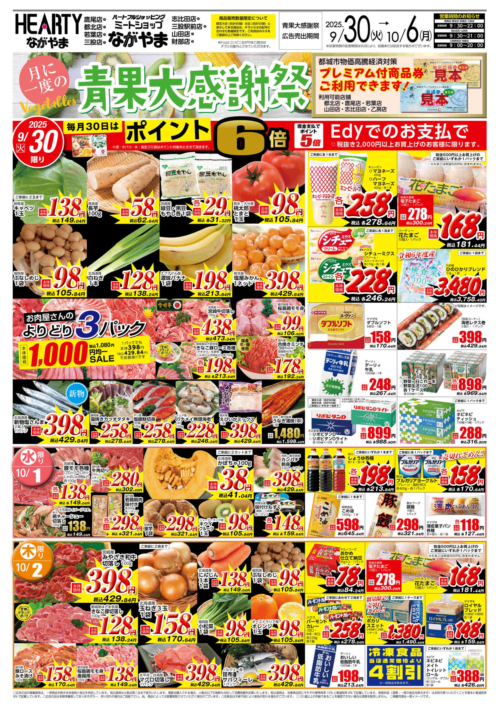ミートショップながやま三股駅前店今週のチラシ(2025年9月29日〜10月5日)