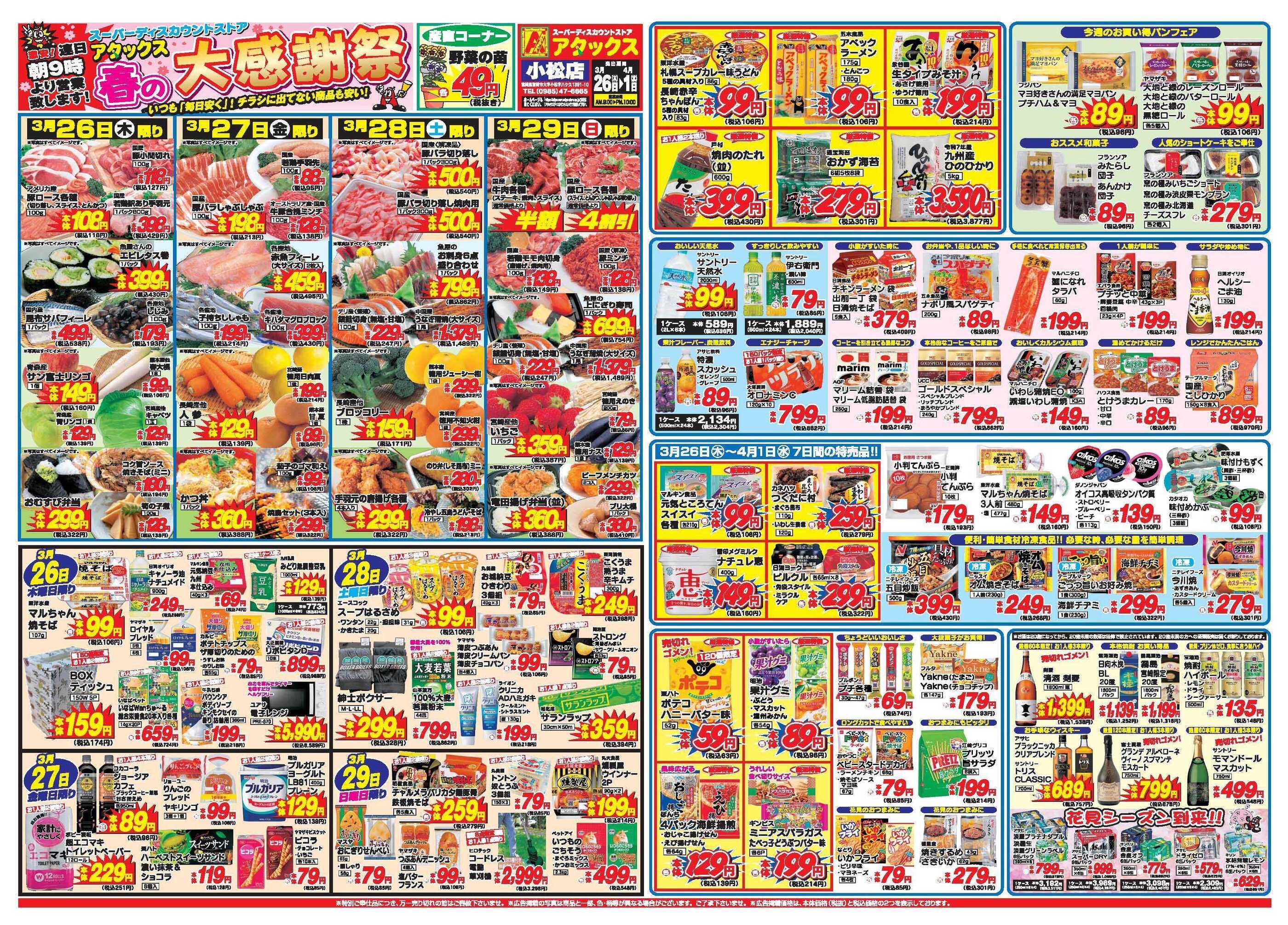アタックス小松店今週のチラシ(2026年3月30日〜4月5日)