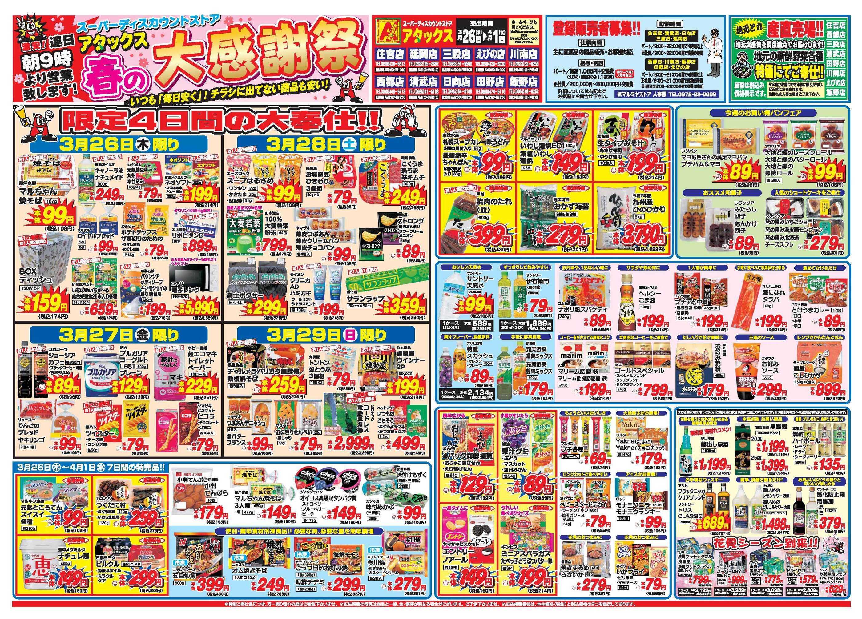 アタックス田野店今週のチラシ(2026年3月30日〜4月5日)