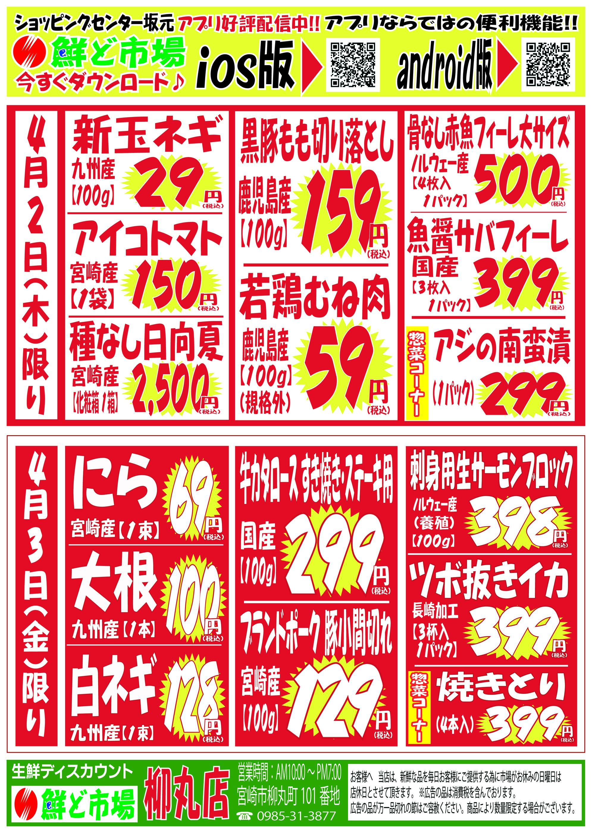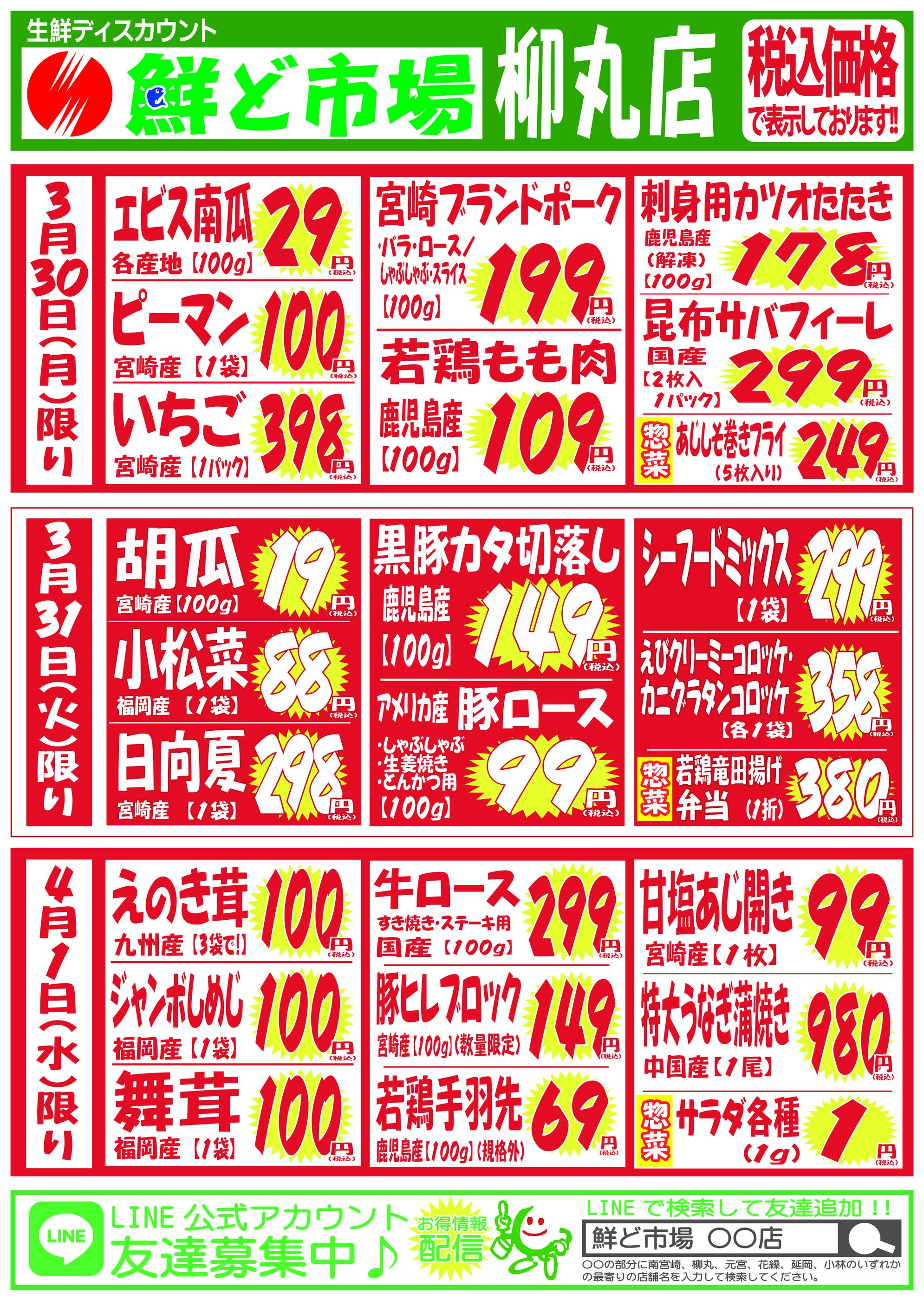 鮮ど市場柳丸店今週のチラシ(2026年3月30日〜4月5日)