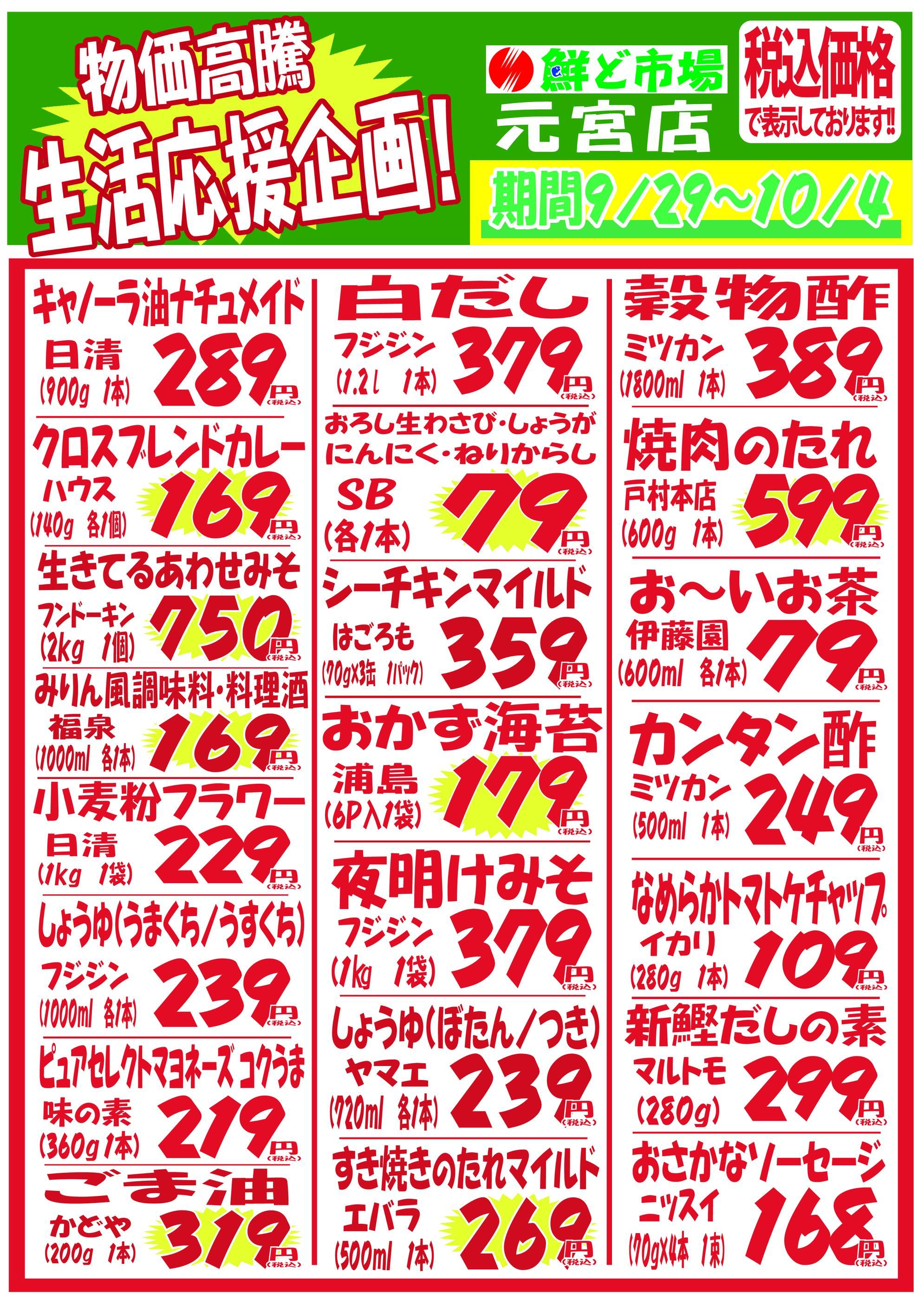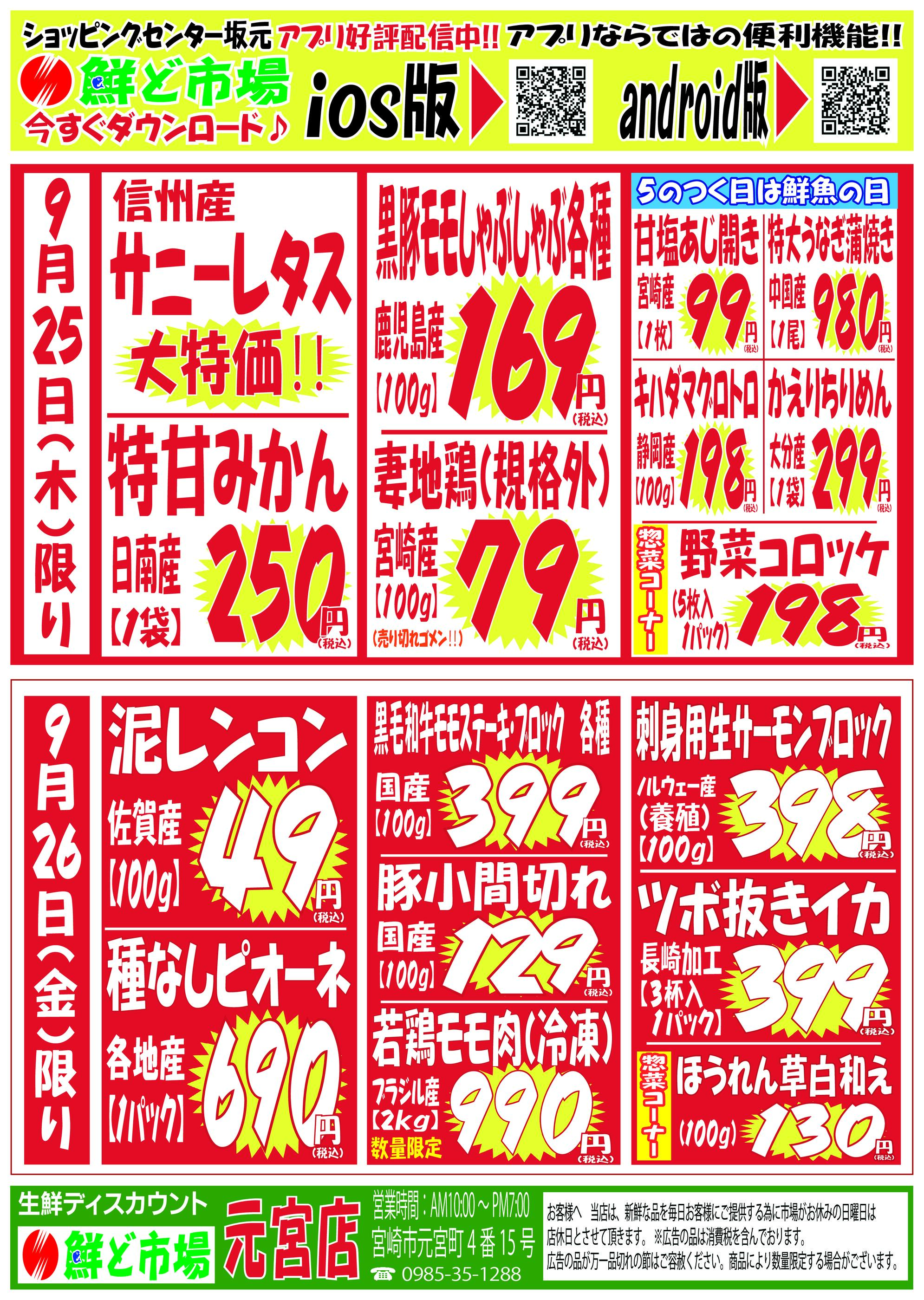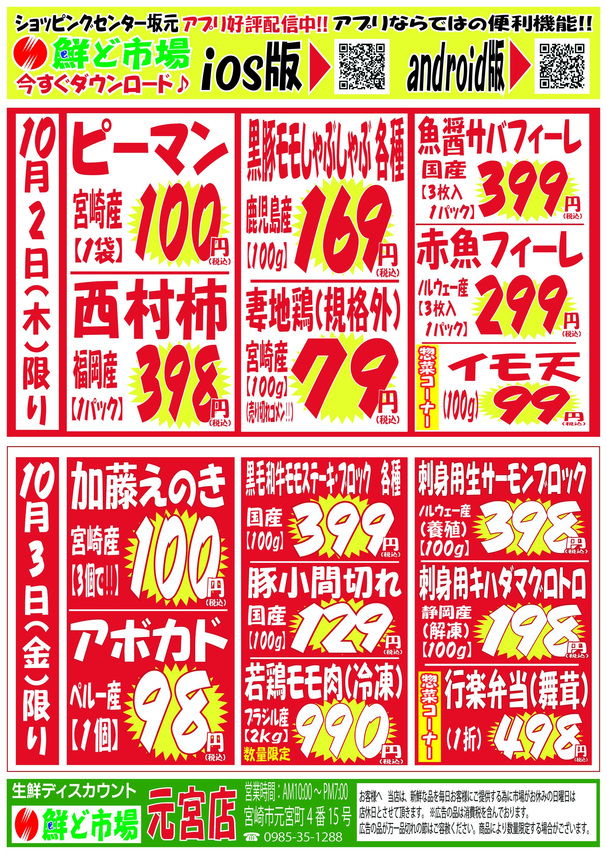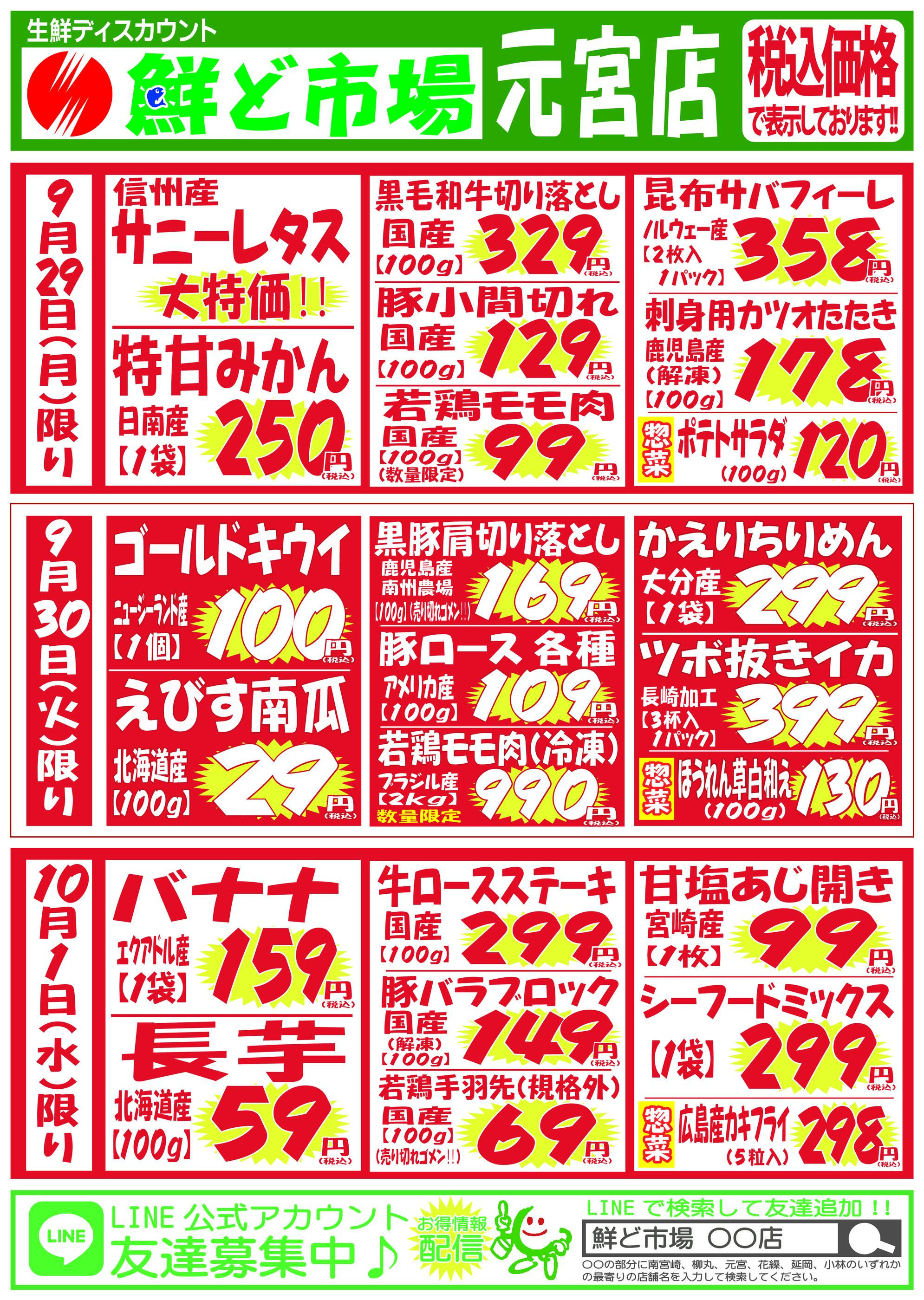 鮮ど市場元宮店今週のチラシ(2025年9月29日〜10月5日)