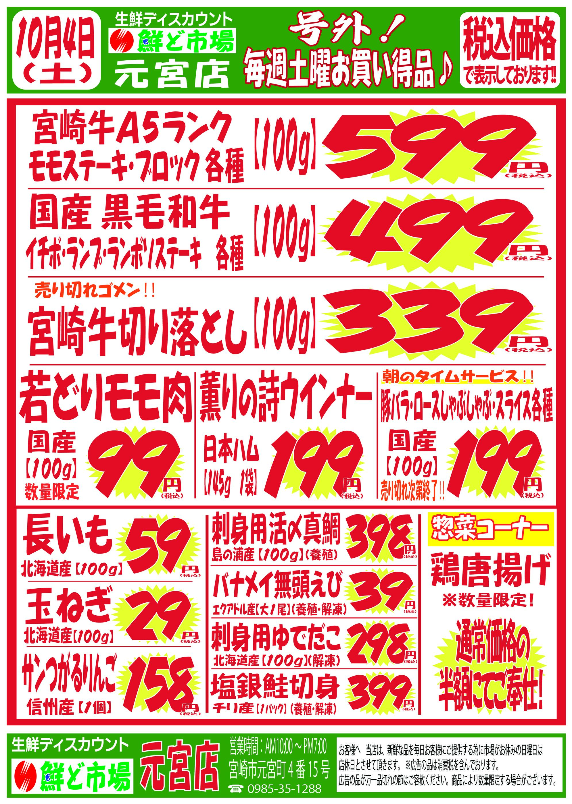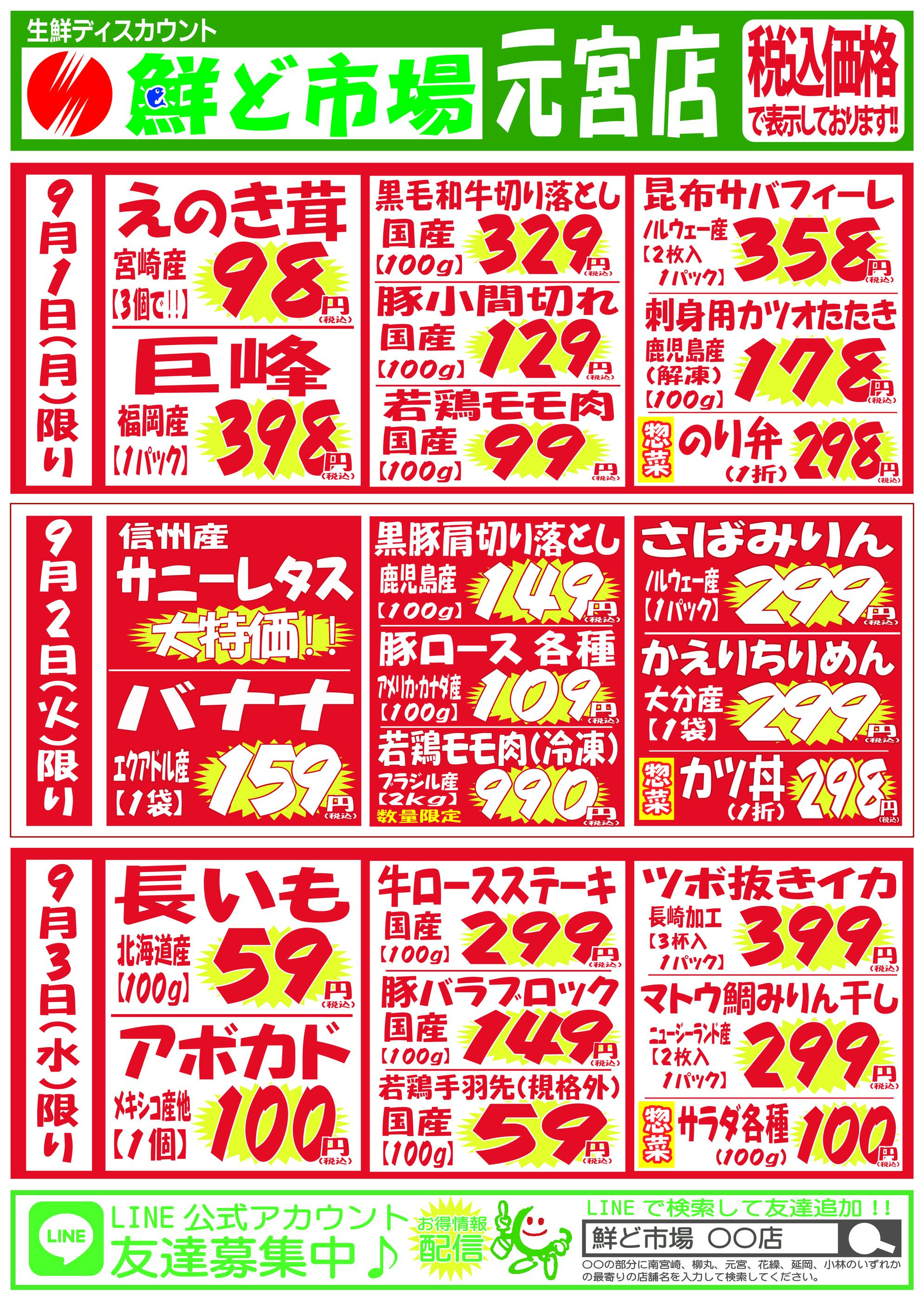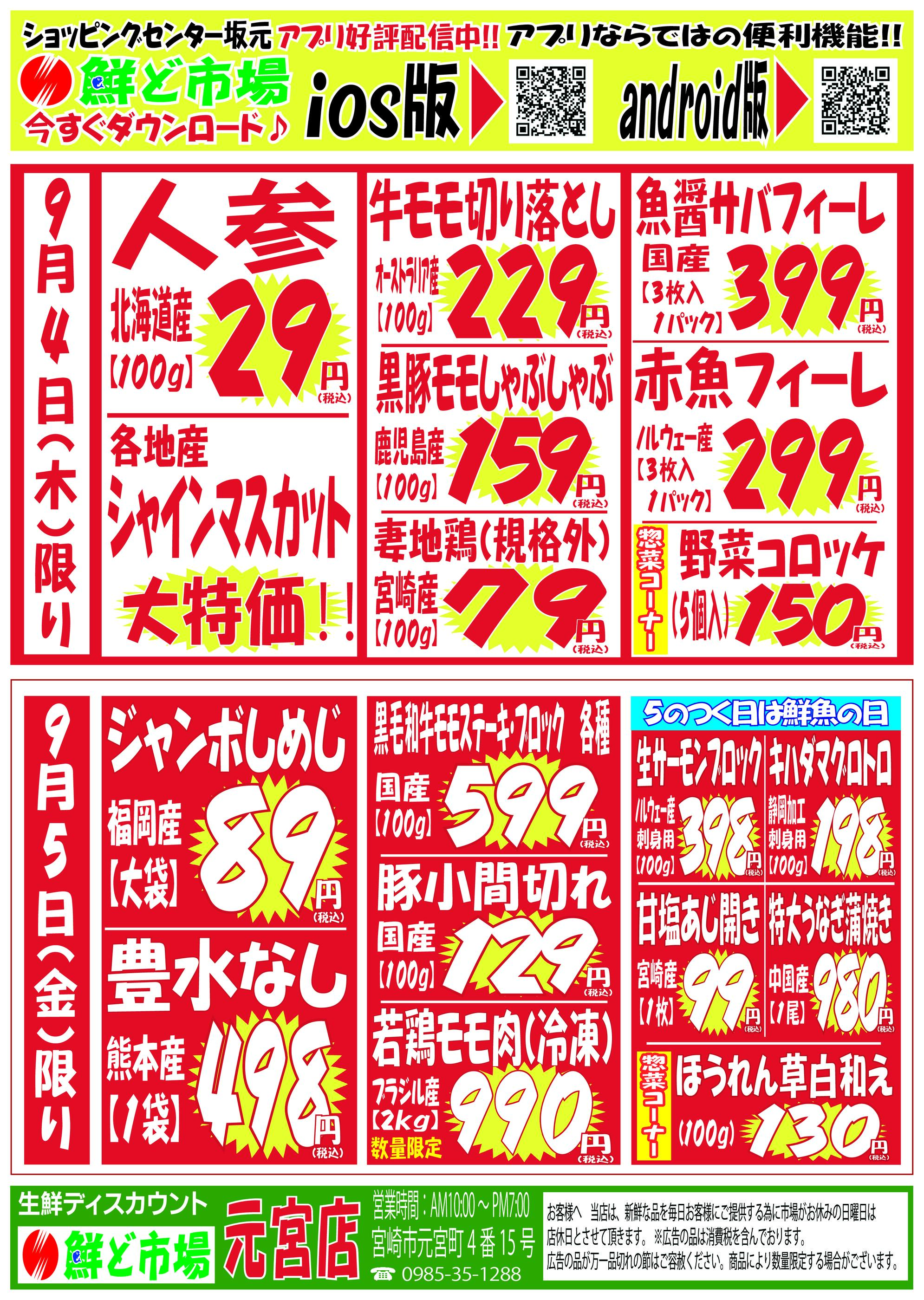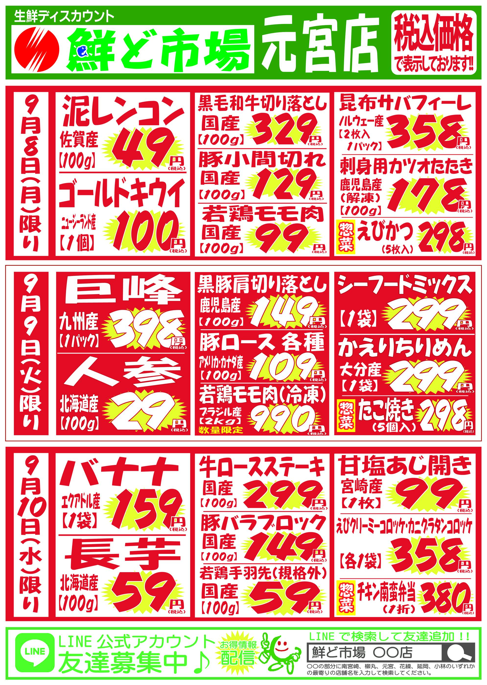 鮮ど市場元宮店今週のチラシ(2025年9月29日〜10月5日)