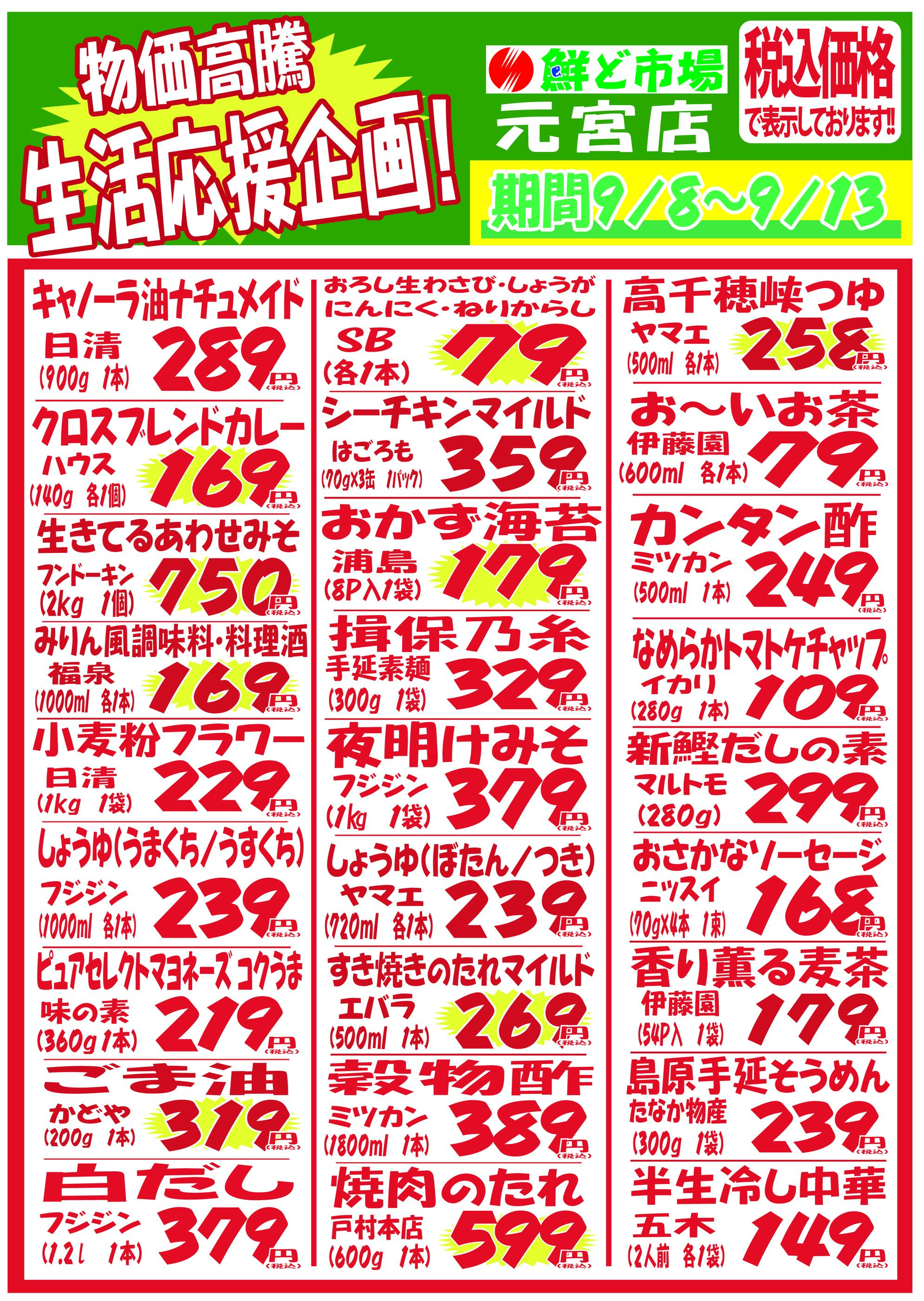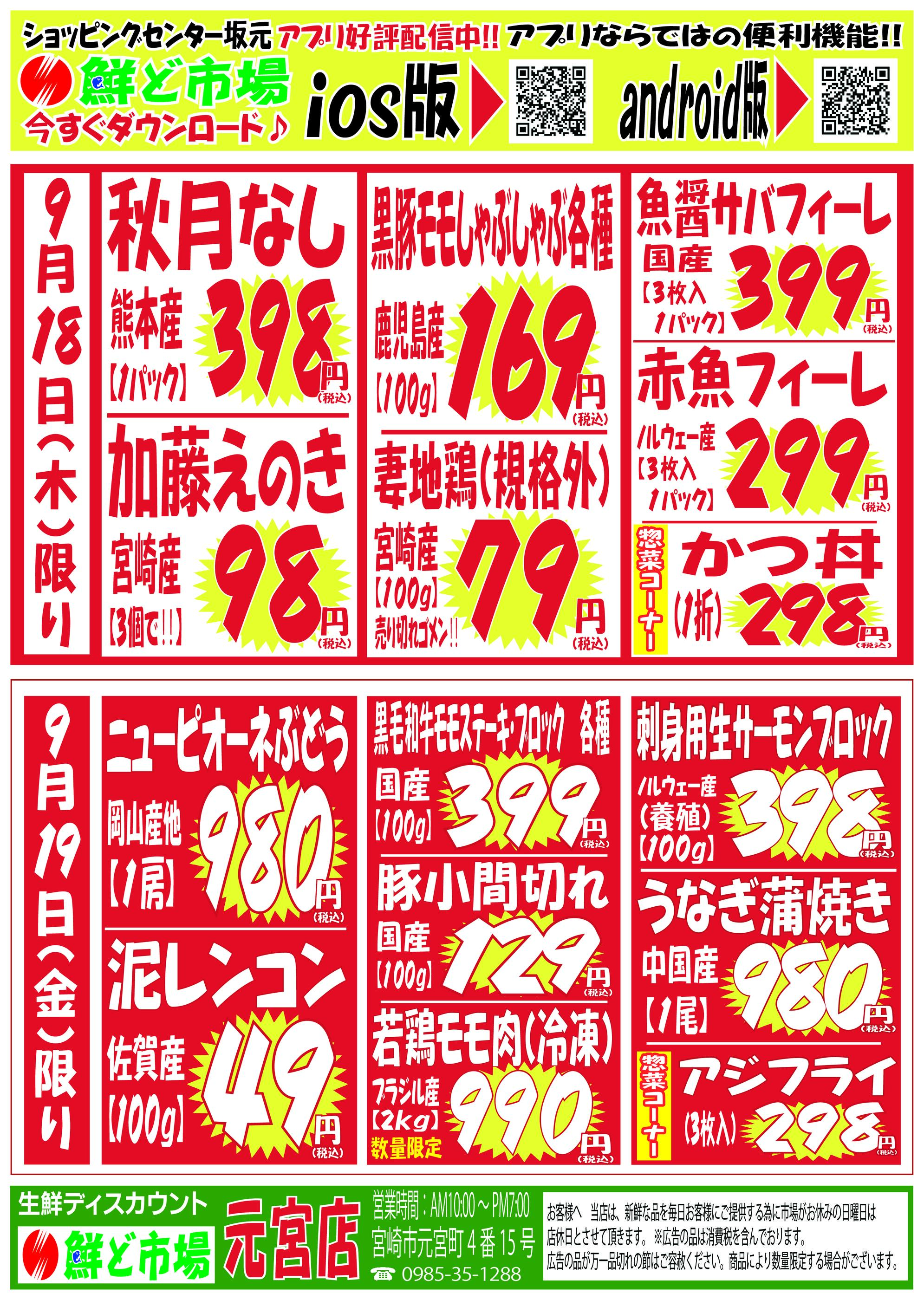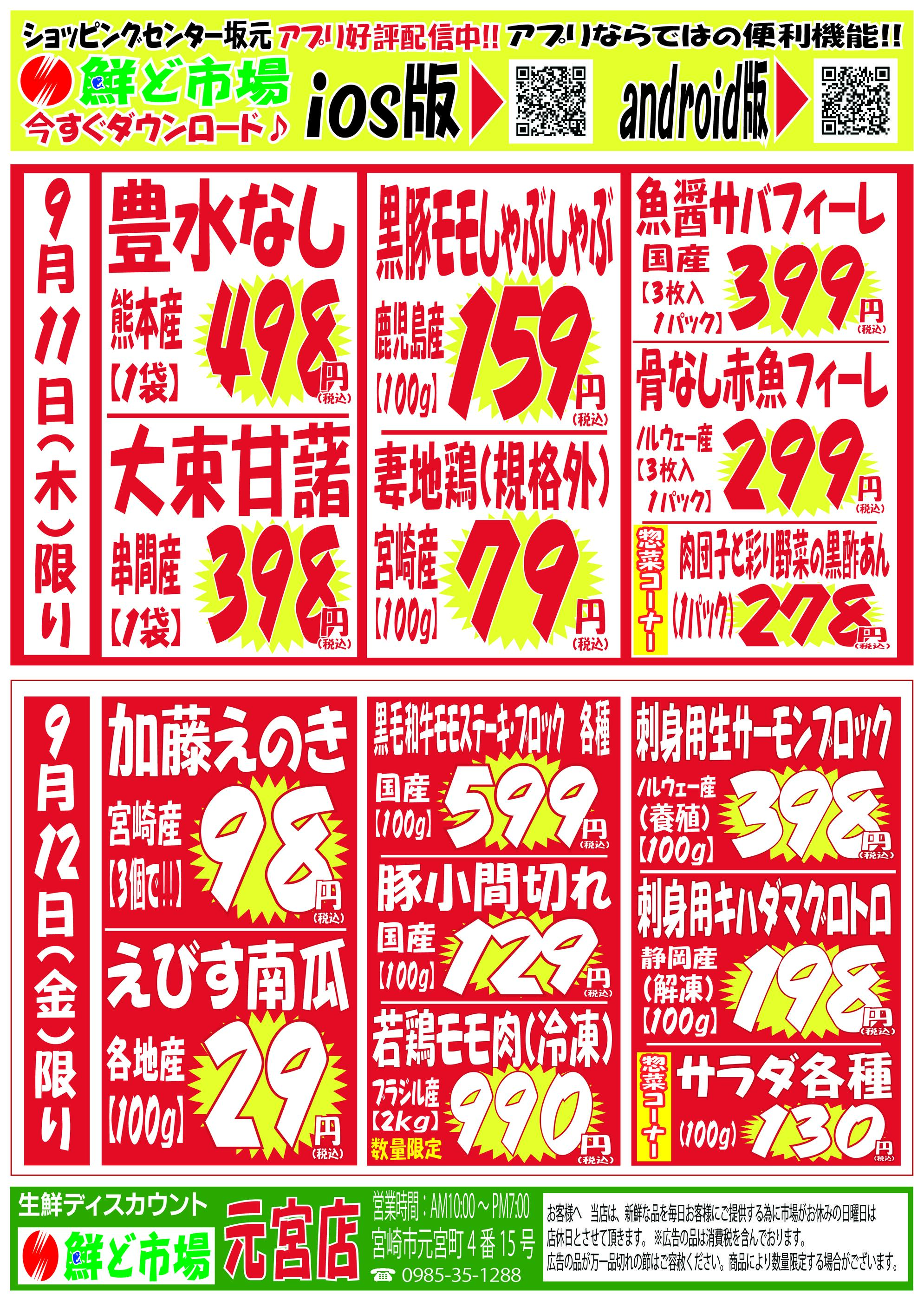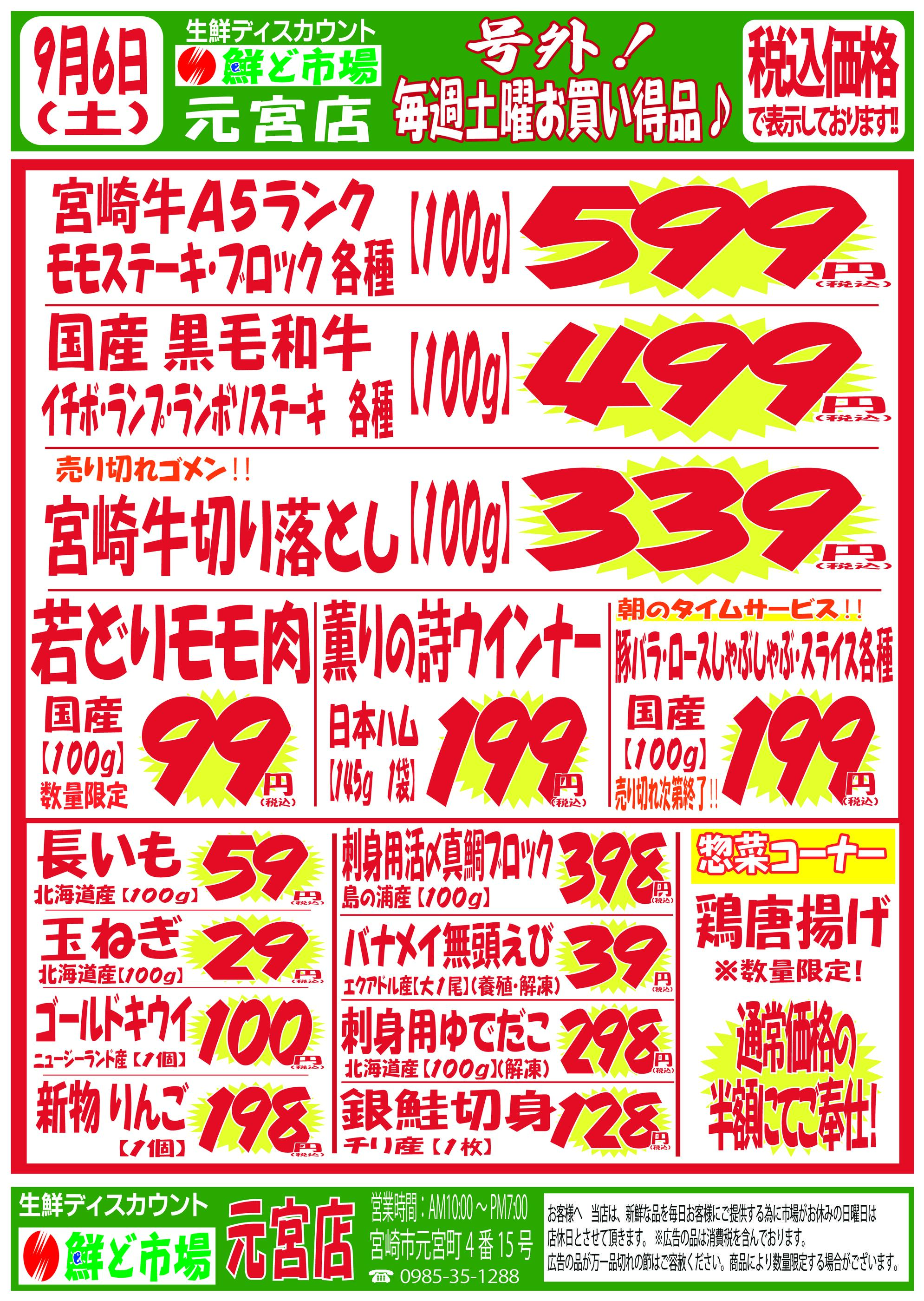鮮ど市場元宮店今週のチラシ(2025年9月29日〜10月5日)
