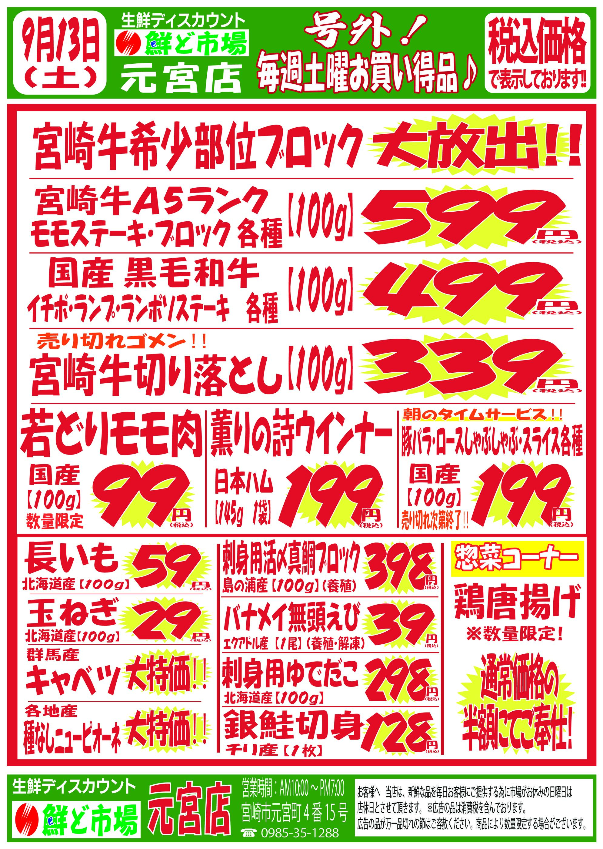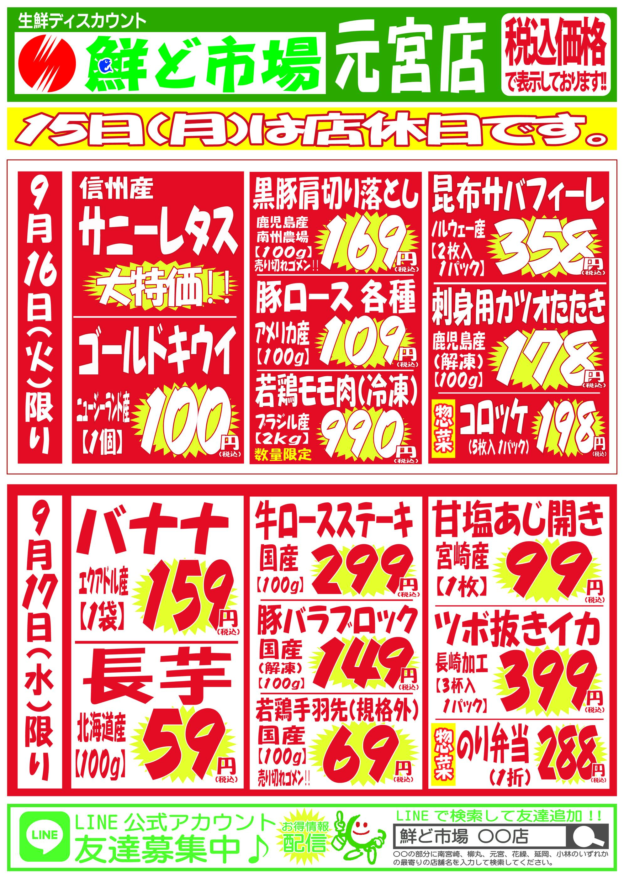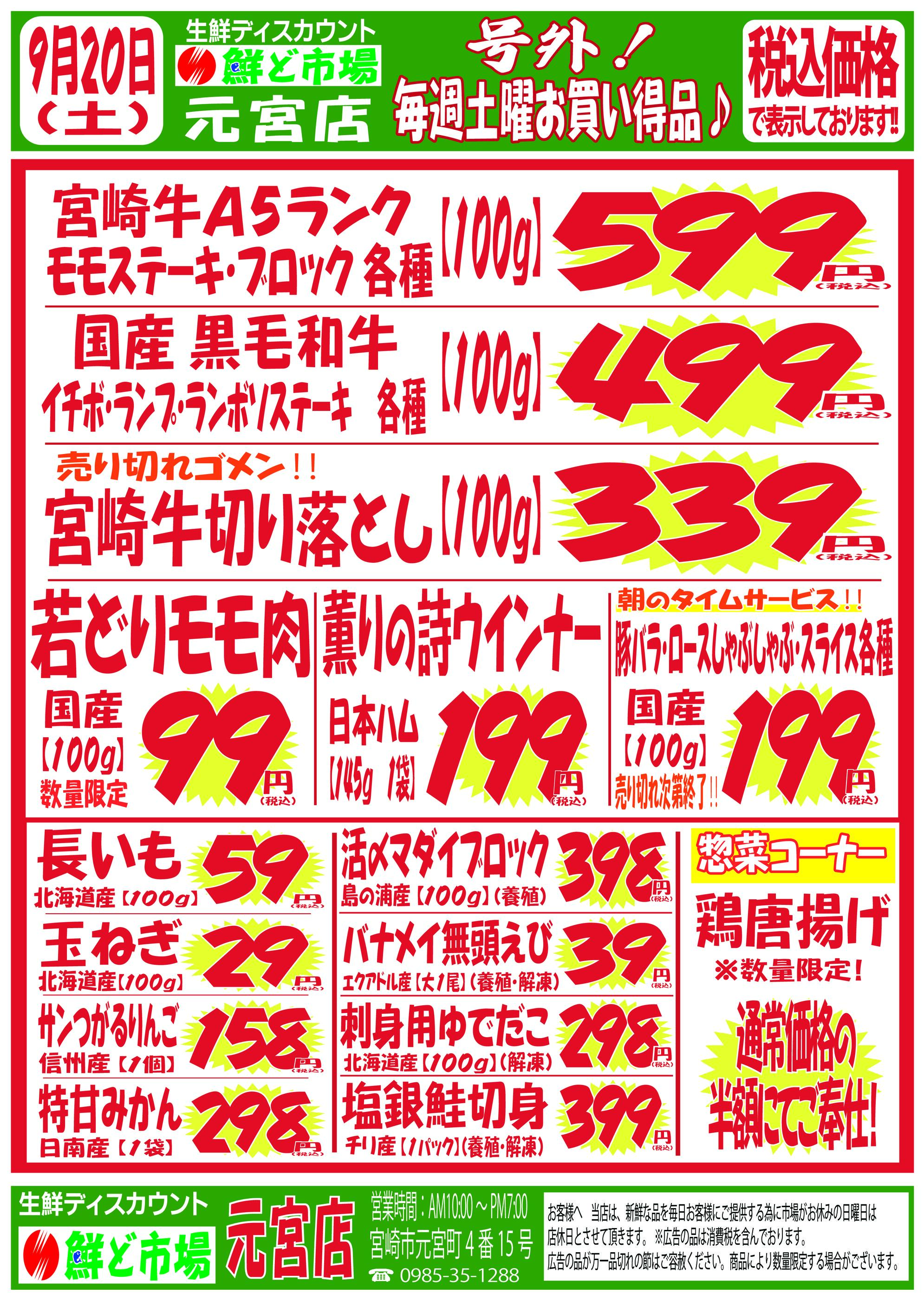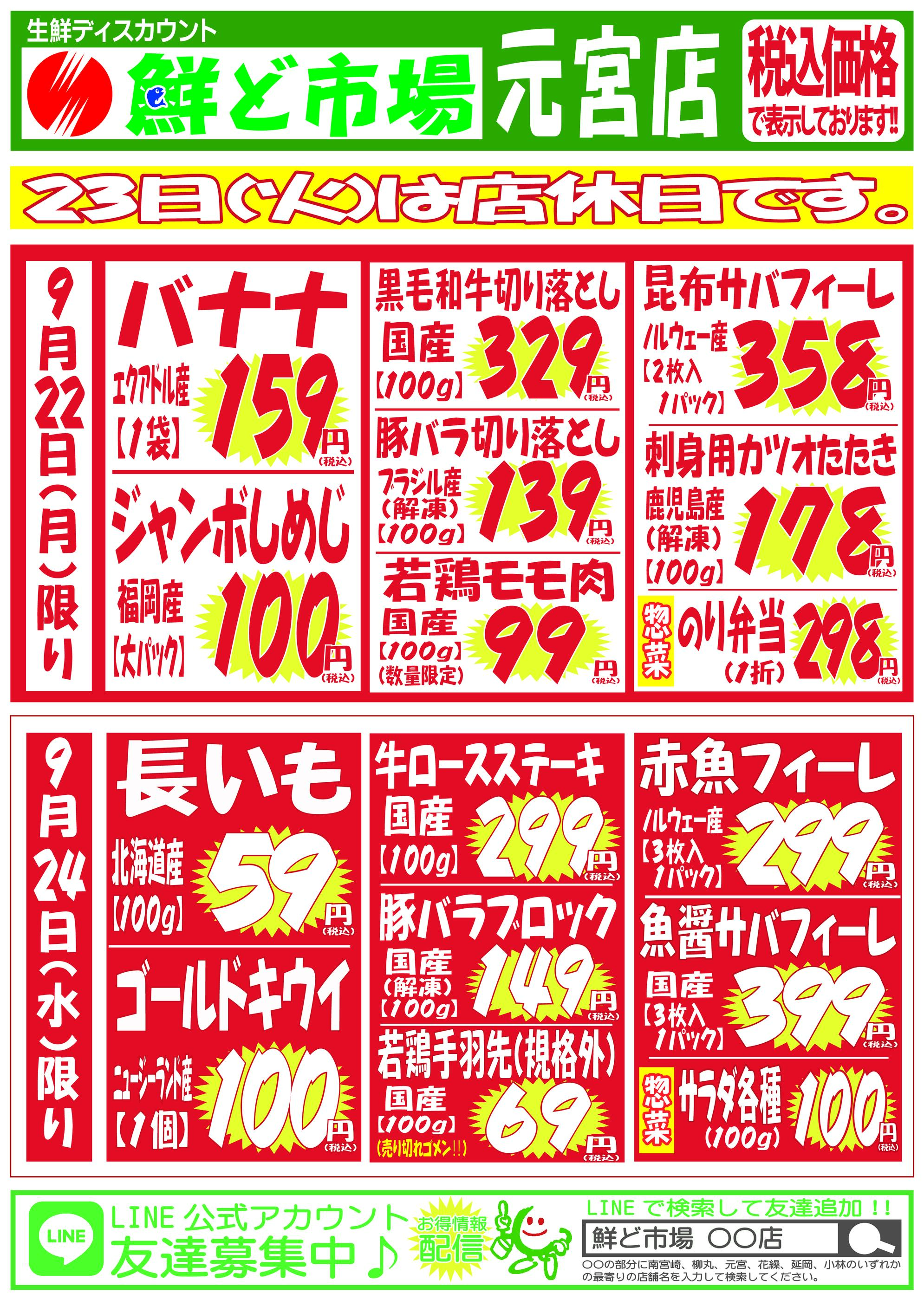 鮮ど市場元宮店今週のチラシ(2025年9月29日〜10月5日)