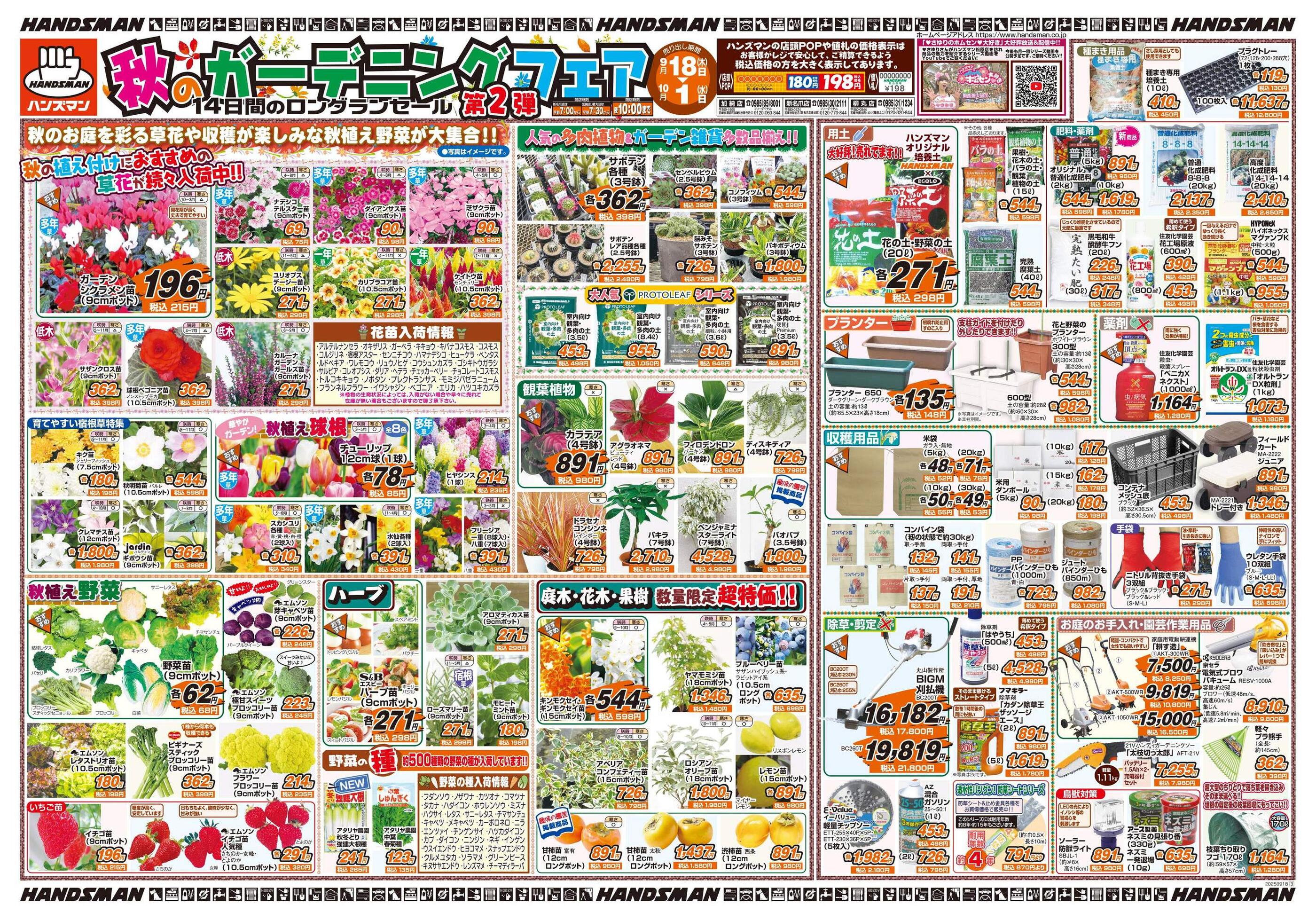 ハンズマン新名爪店今週のチラシ(2025年9月29日〜10月5日)