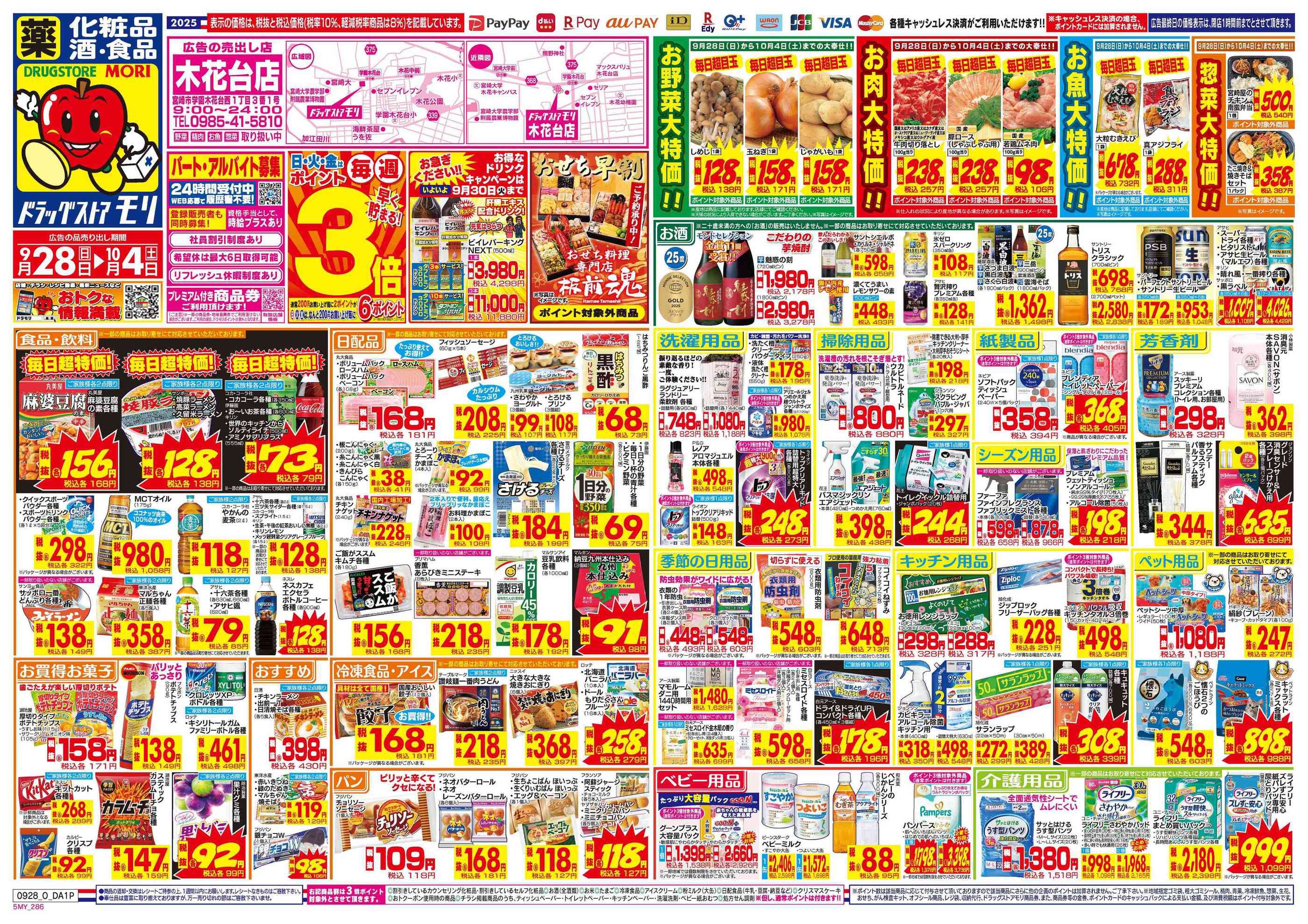 ドラッグストアモリ木花台店今週のチラシ(2025年9月29日〜10月5日)