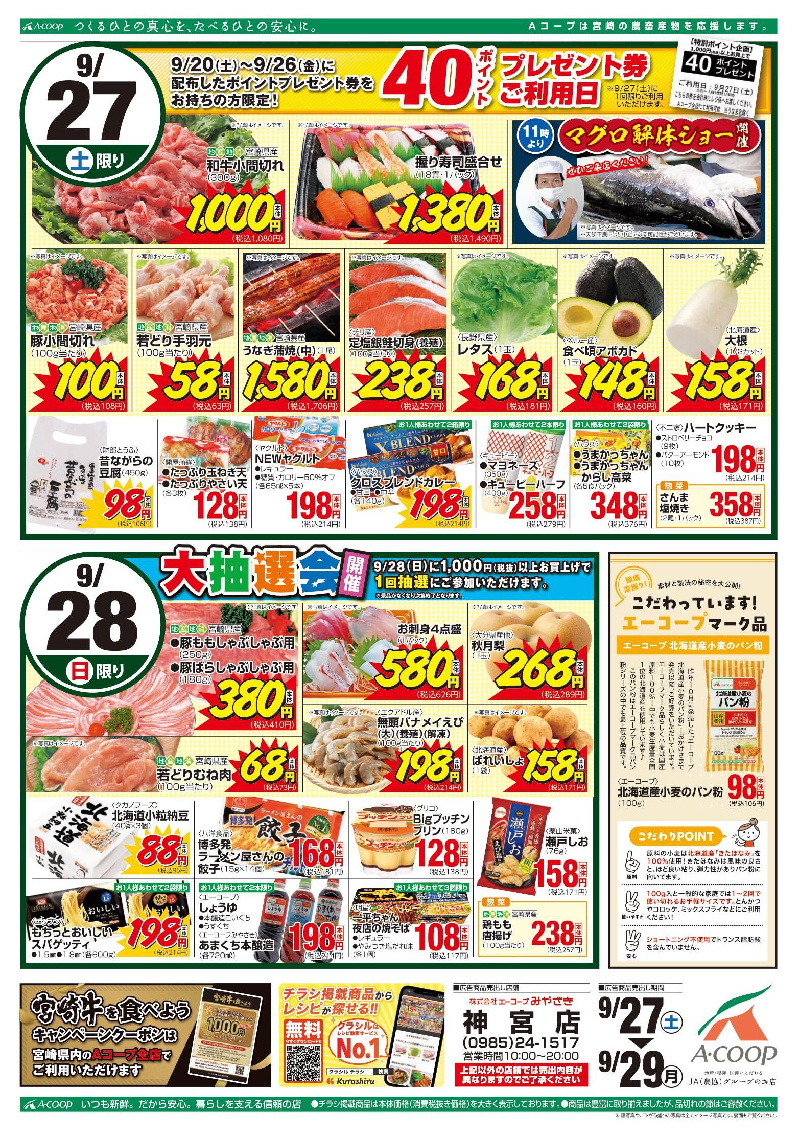 Aコープ神宮店今週のチラシ(2025年9月29日〜10月5日)