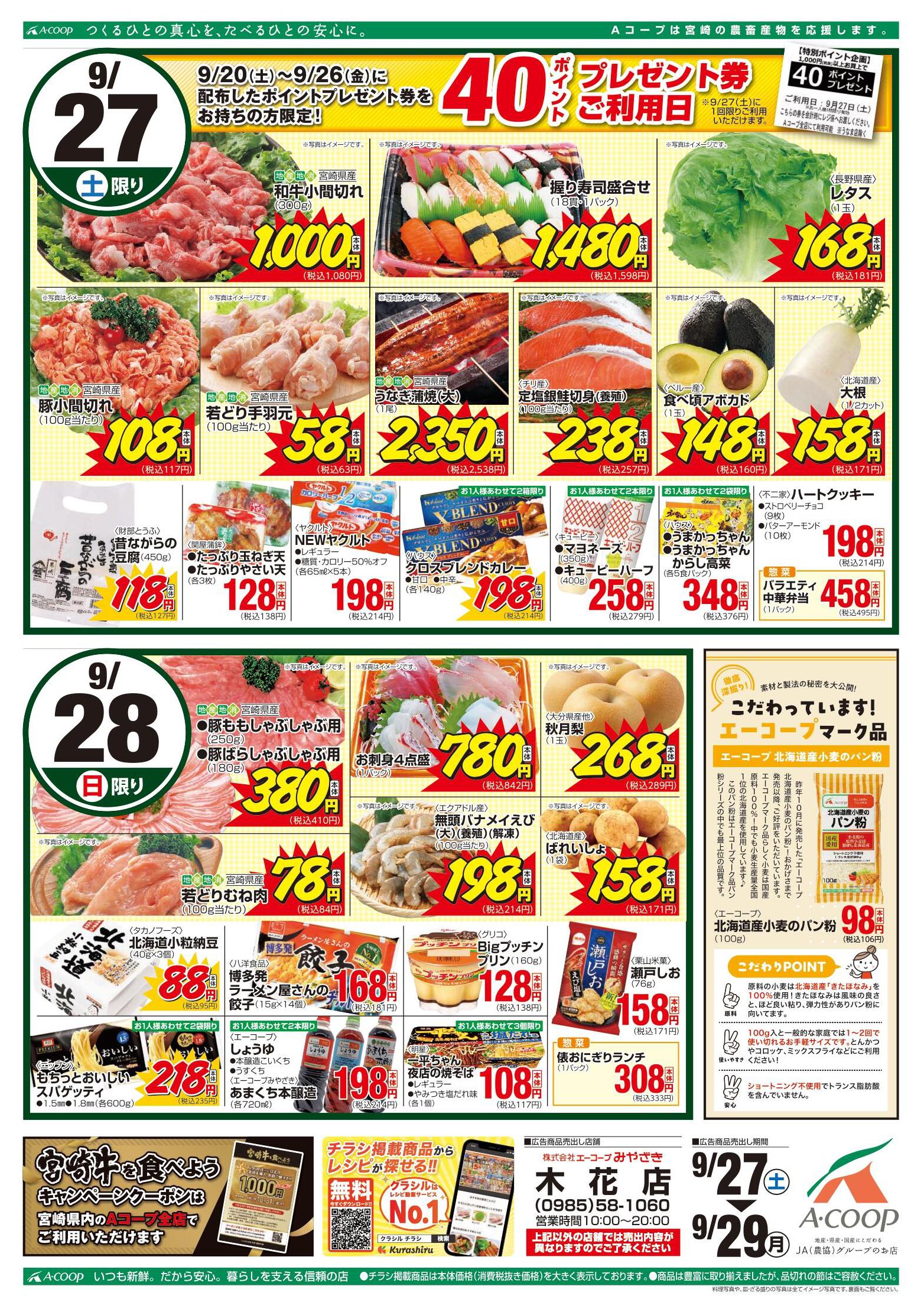 Aコープ木花店今週のチラシ(2025年9月29日〜10月5日)