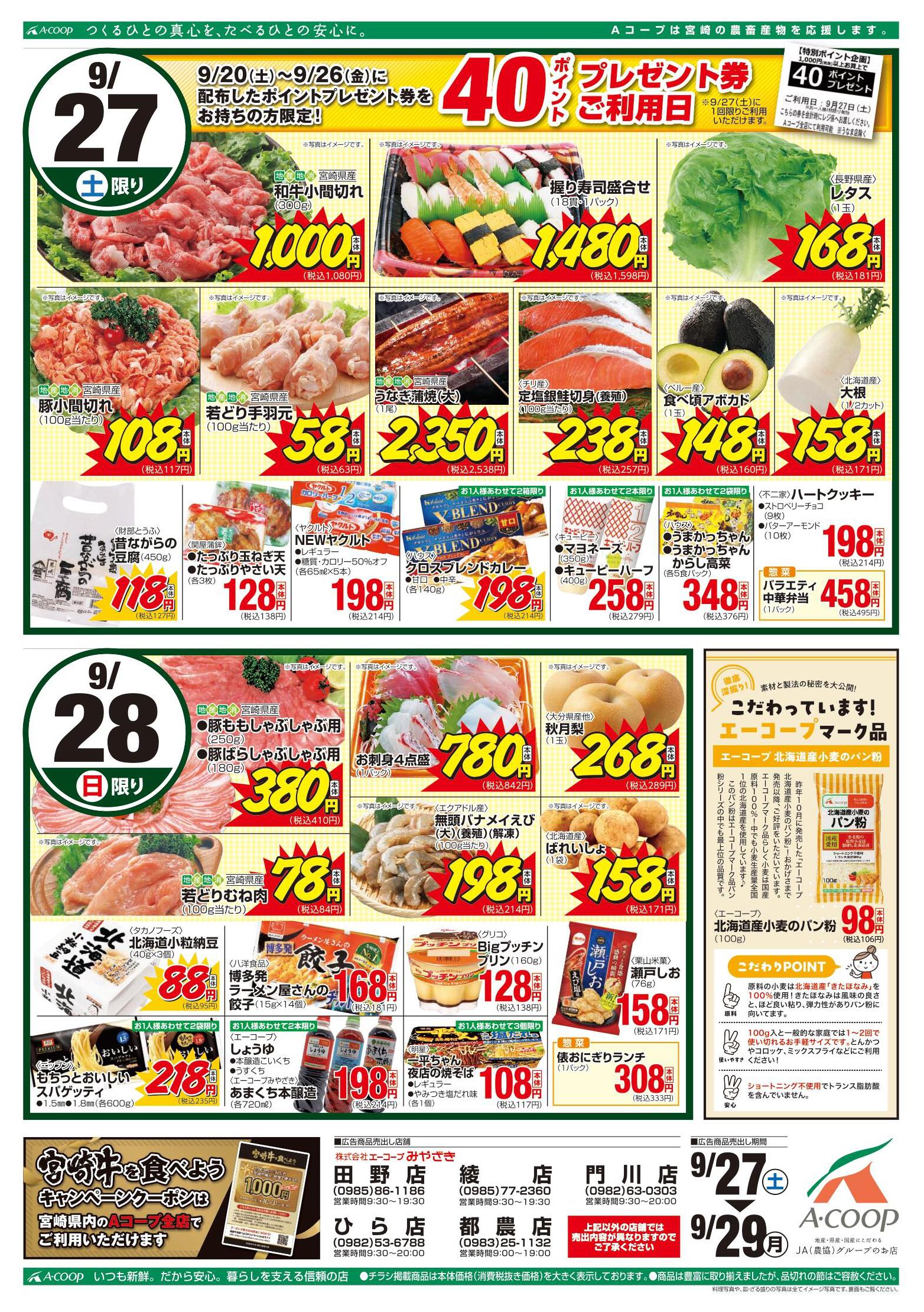 Aコープ田野店今週のチラシ(2025年9月29日〜10月5日)