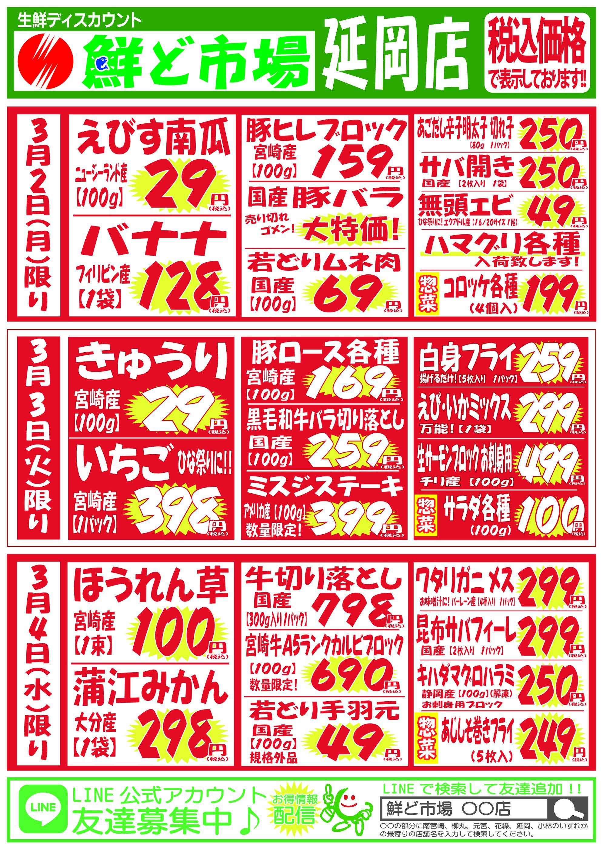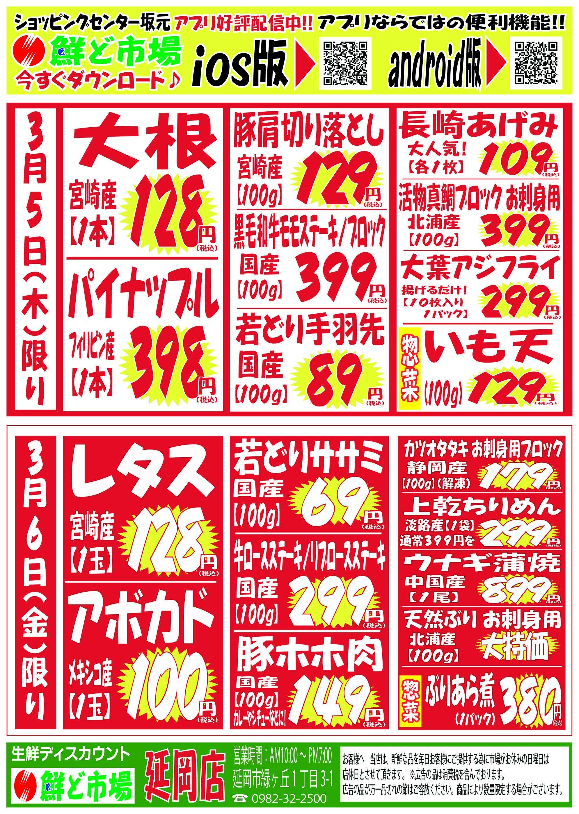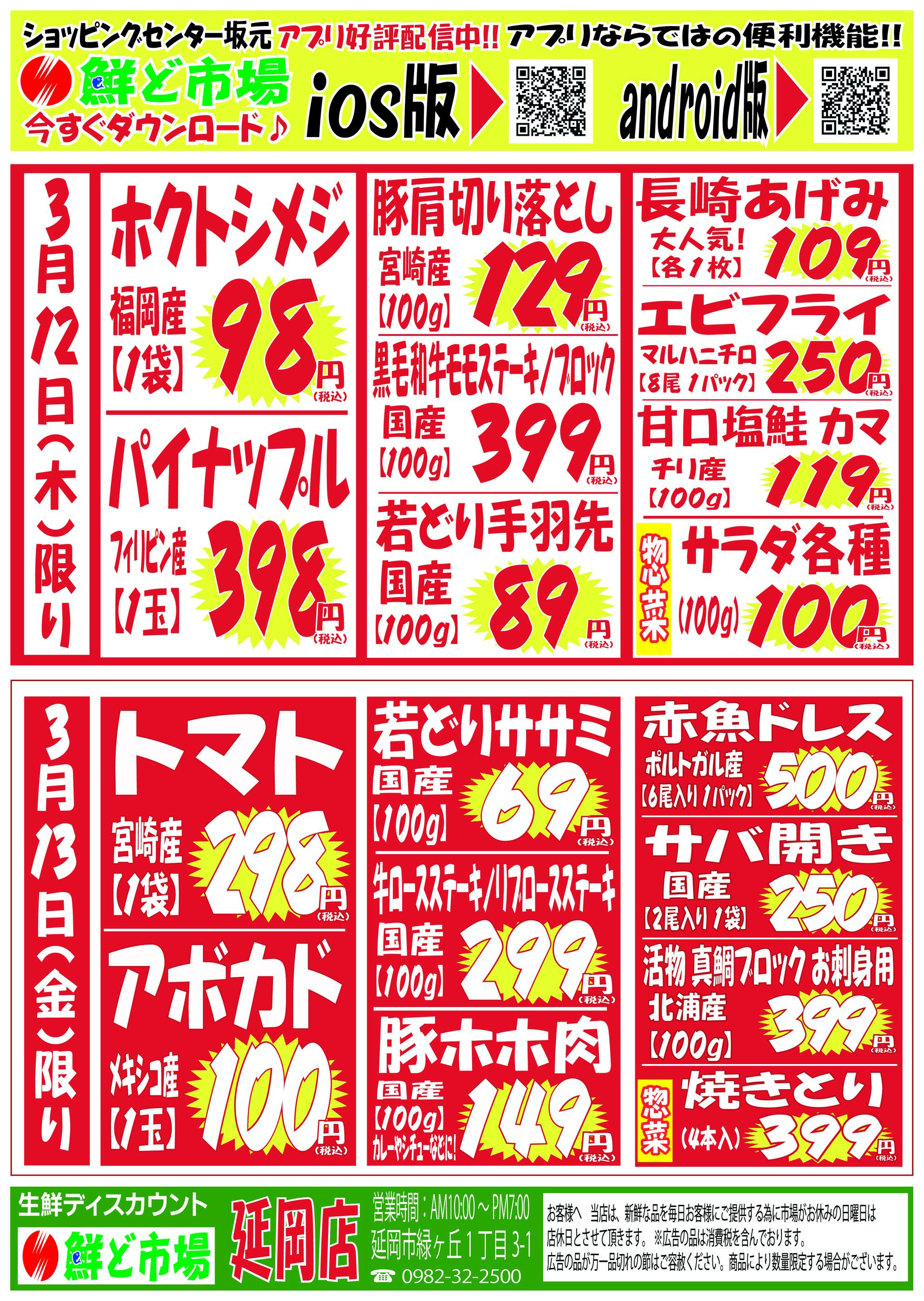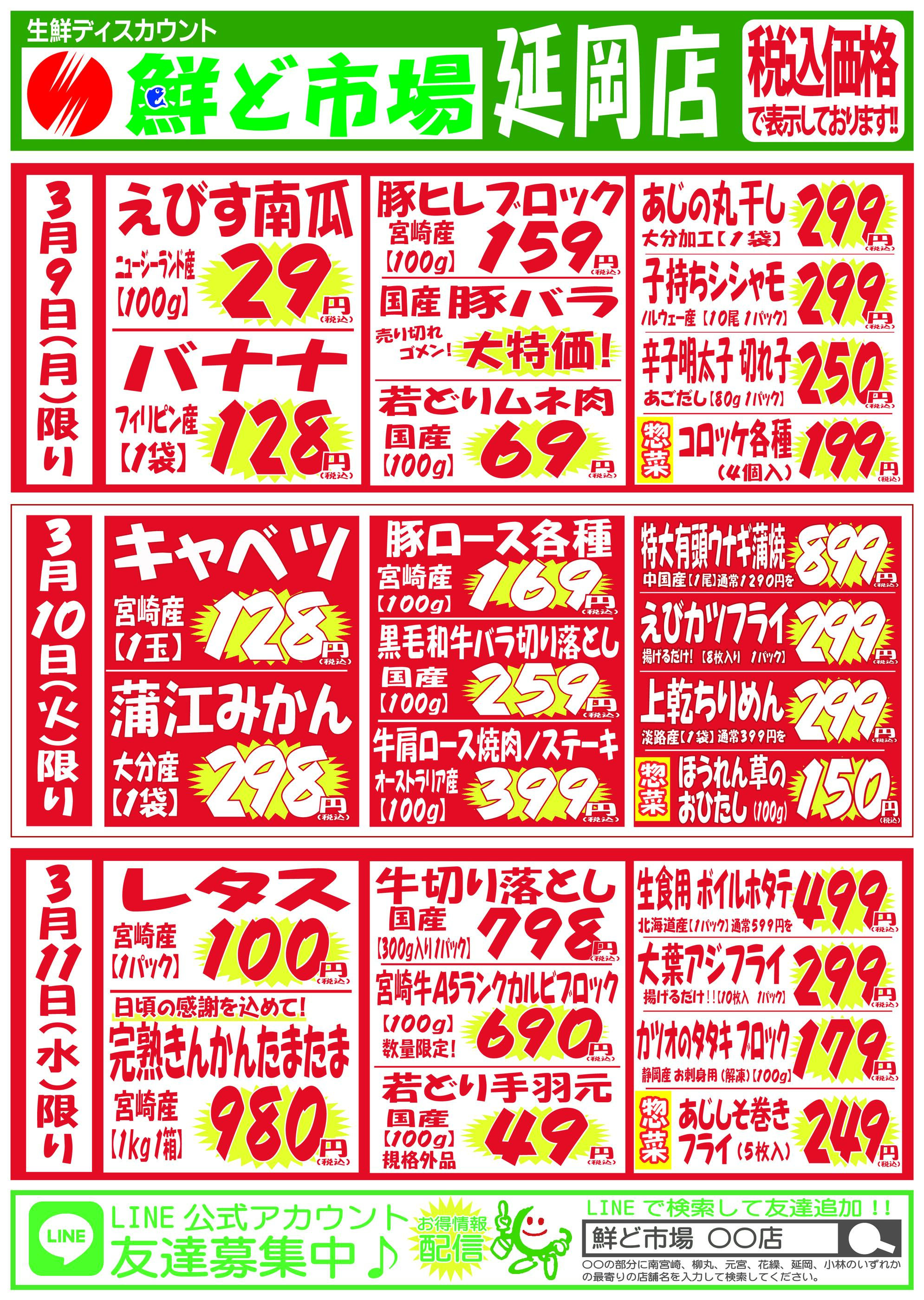 鮮ど市場延岡店今週のチラシ(2026年3月9日〜3月15日)