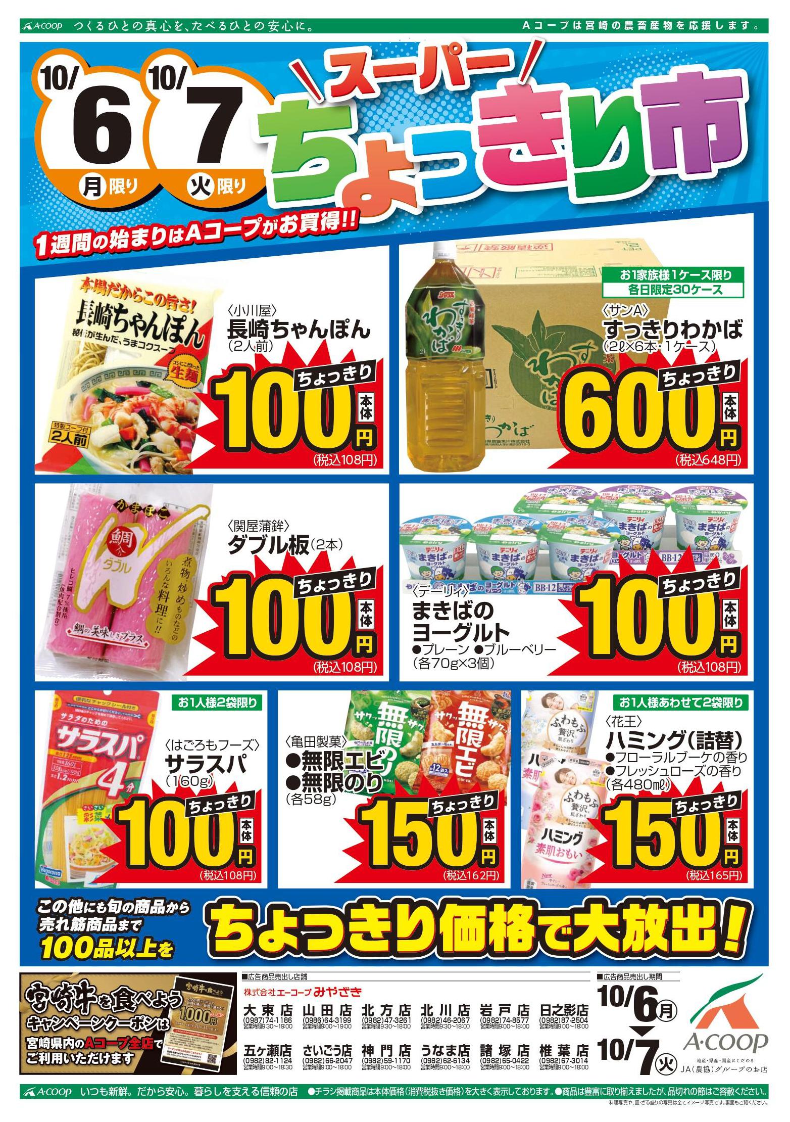 Aコープうなま店今週のチラシ(2025年10月6日〜10月12日)