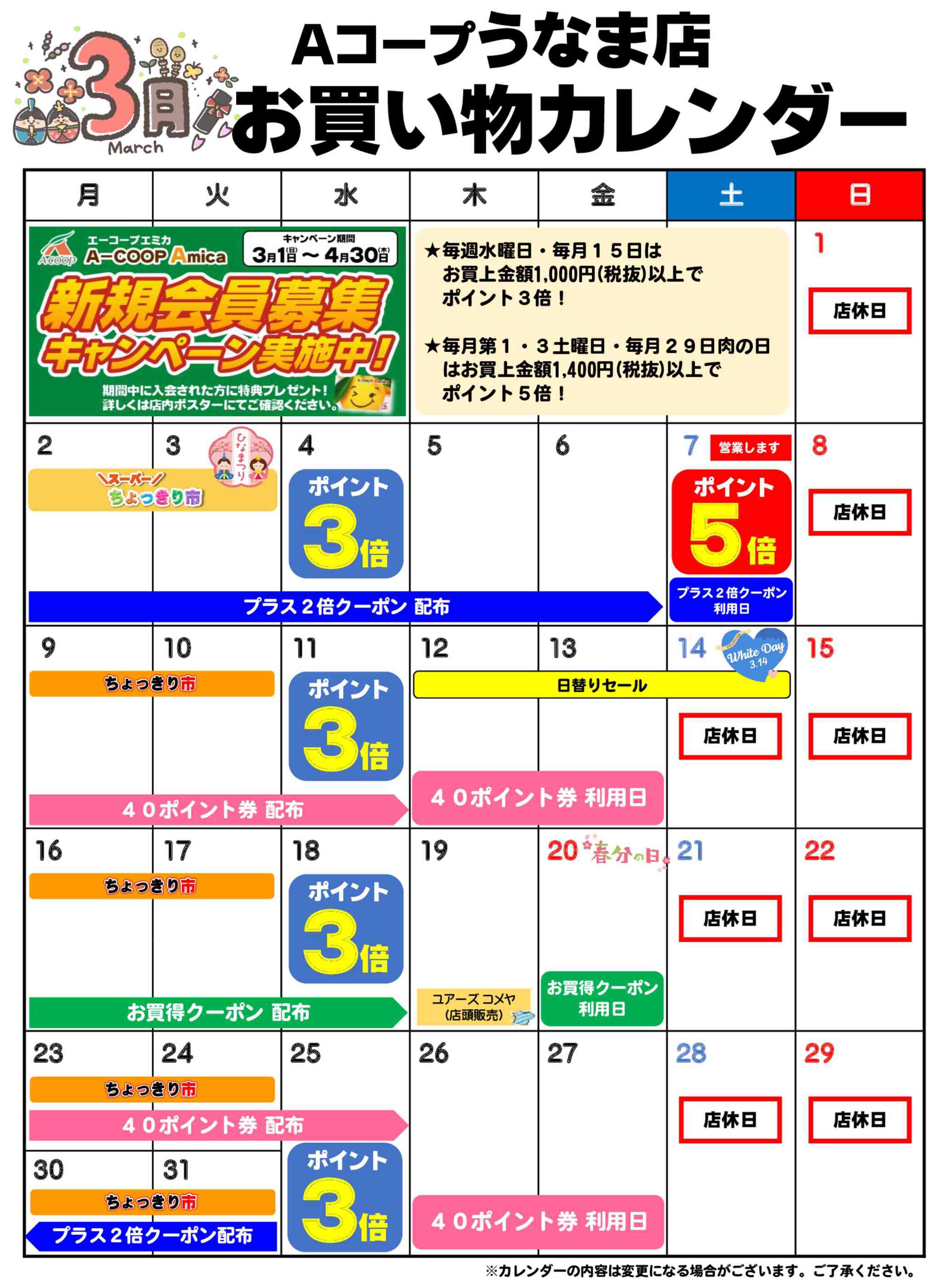 Aコープうなま店今週のチラシ(2026年3月16日〜3月22日)