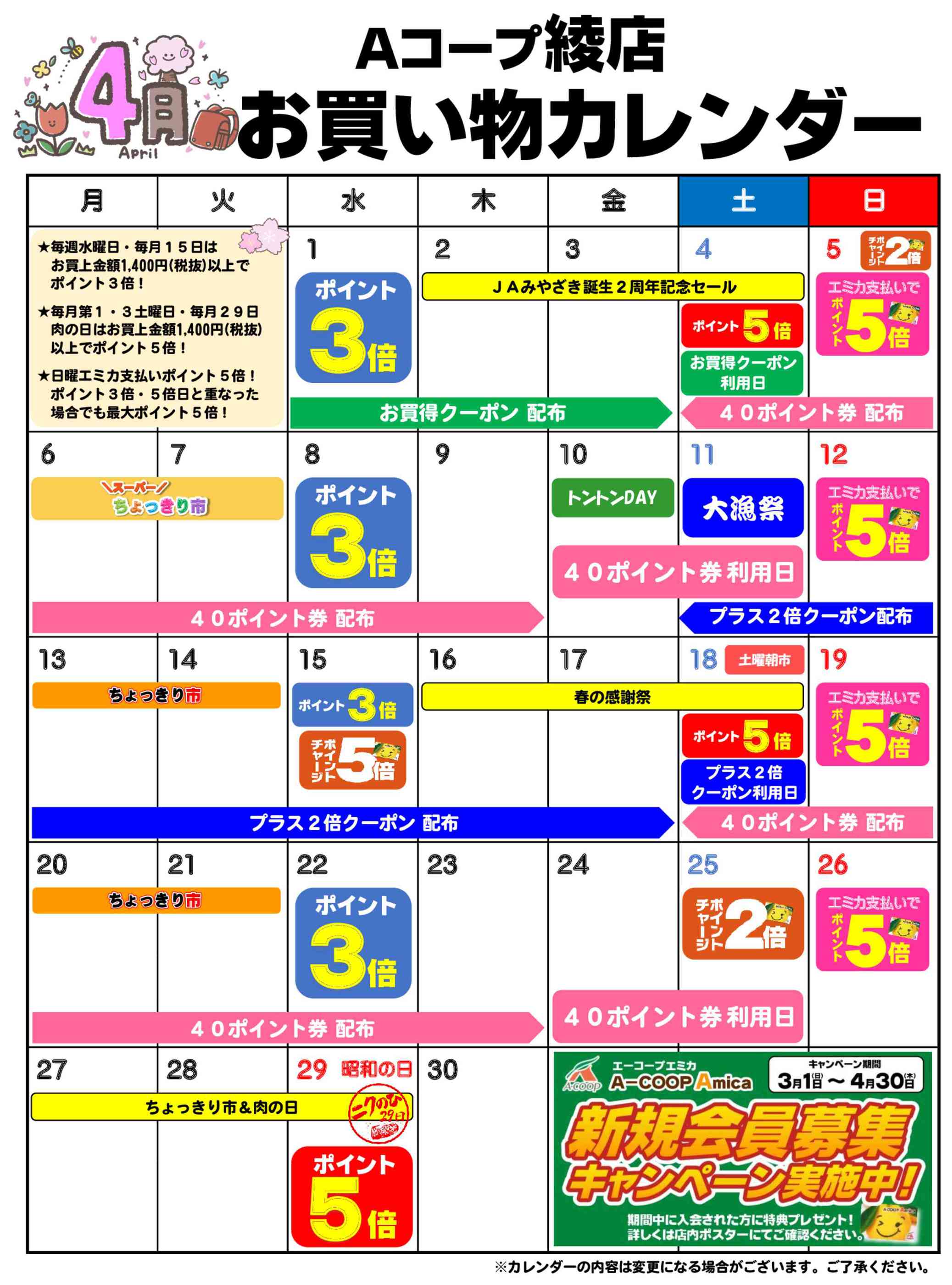 Aコープ綾店今週のチラシ(2026年3月30日〜4月5日)