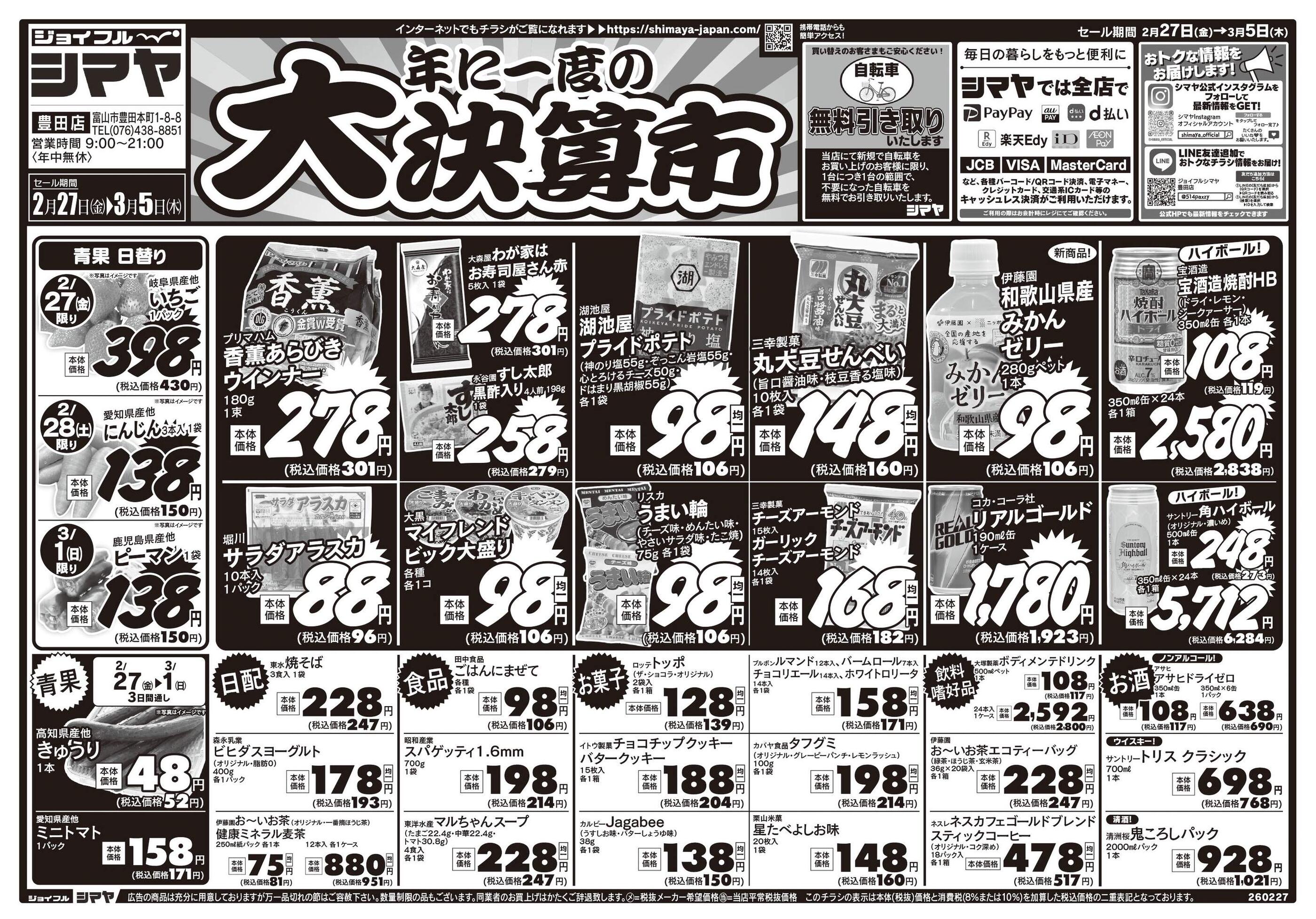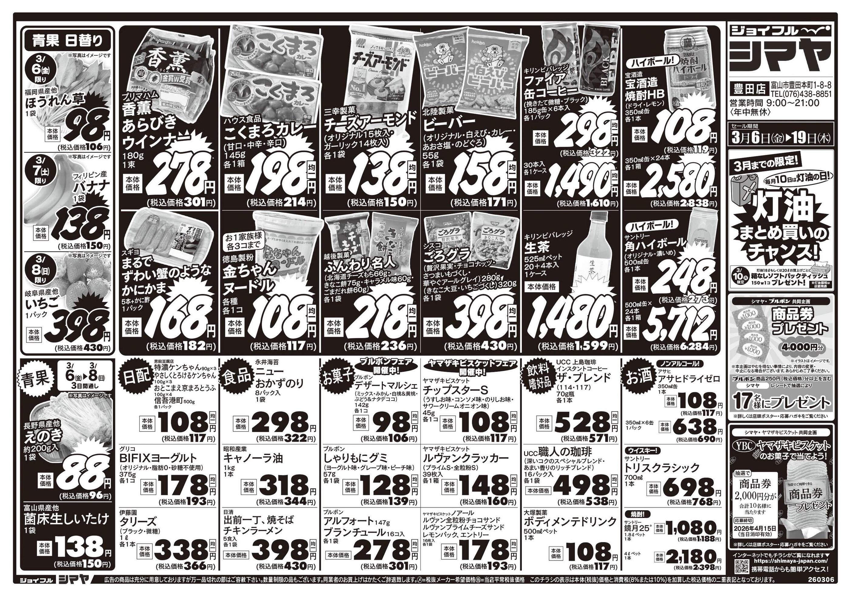 ジョイフルシマヤ豊田店今週のチラシ(2026年3月9日〜3月15日)