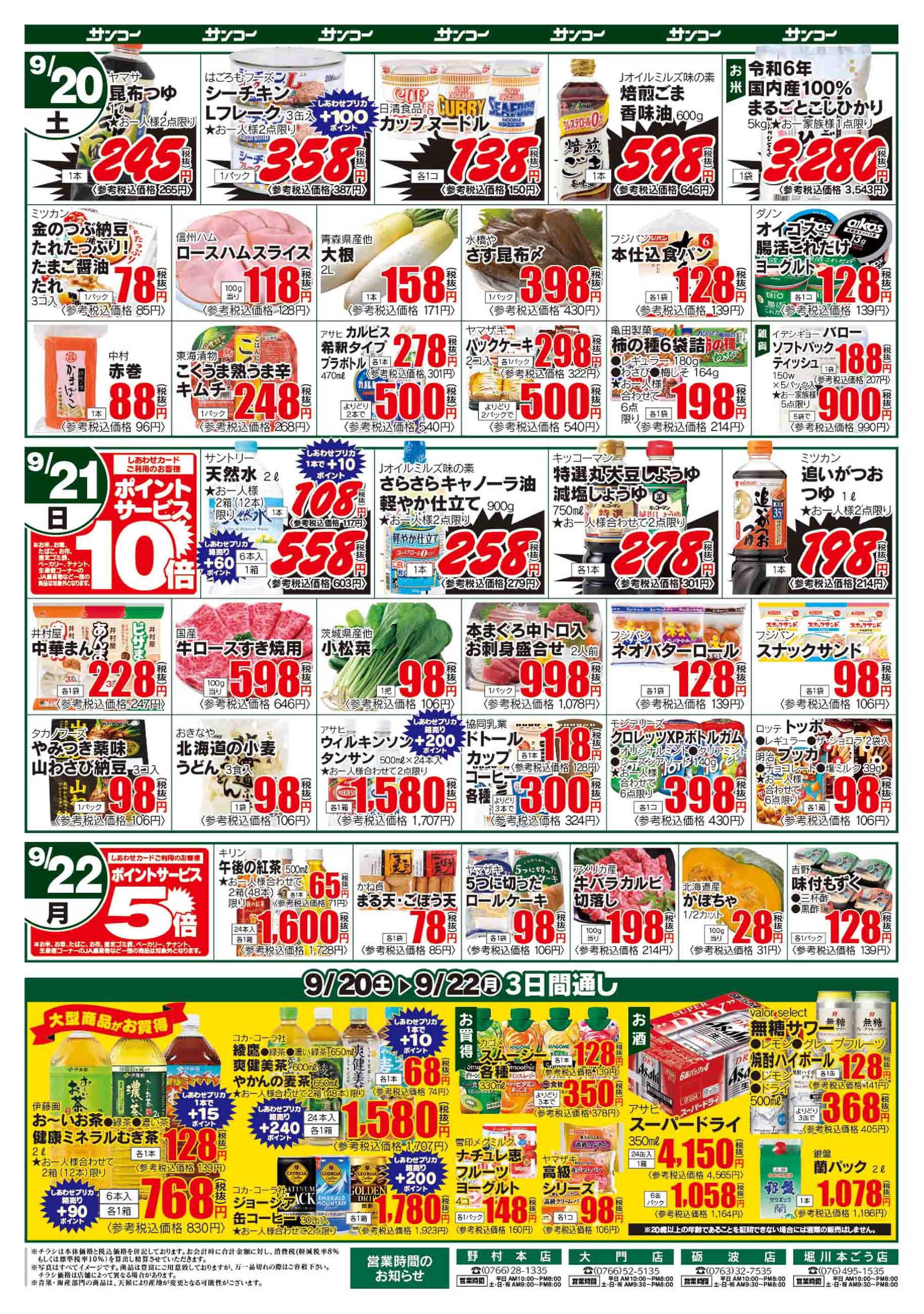 サンコー砺波インター店今週のチラシ(2025年9月29日〜10月5日)