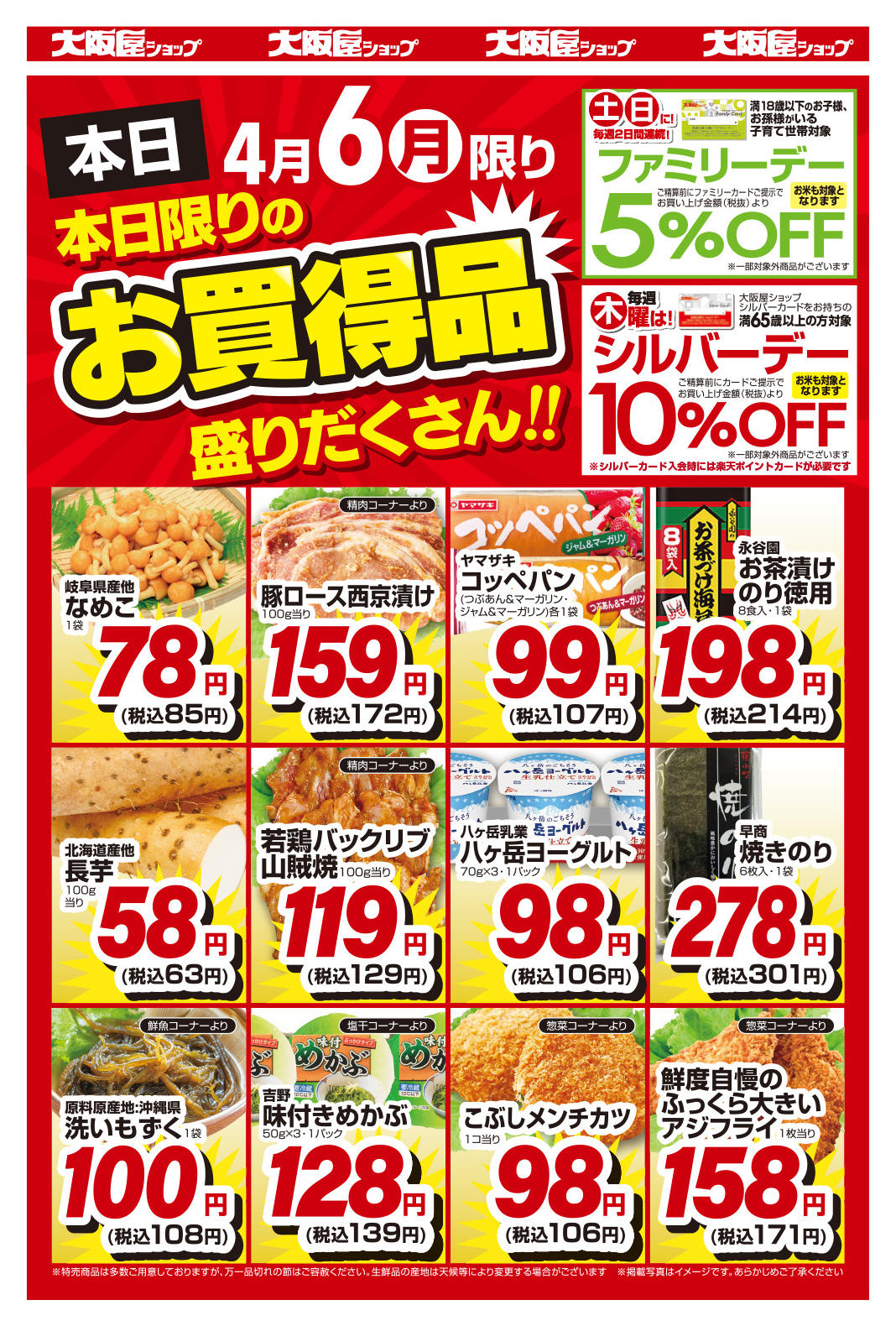 大阪屋ショップ出来田店今週のチラシ(2026年4月6日〜4月12日)