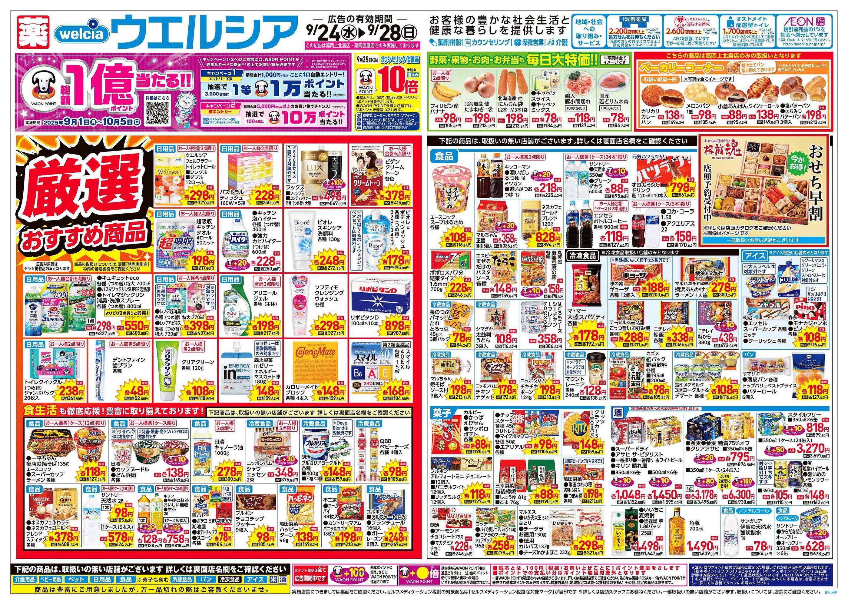 ウエルシア高岡上北島店今週のチラシ(2025年9月29日〜10月5日)