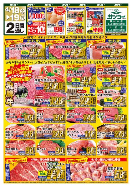特売やセール情報など最新のチラシを掲載中。(1種類、3枚のチラシを掲載しています)