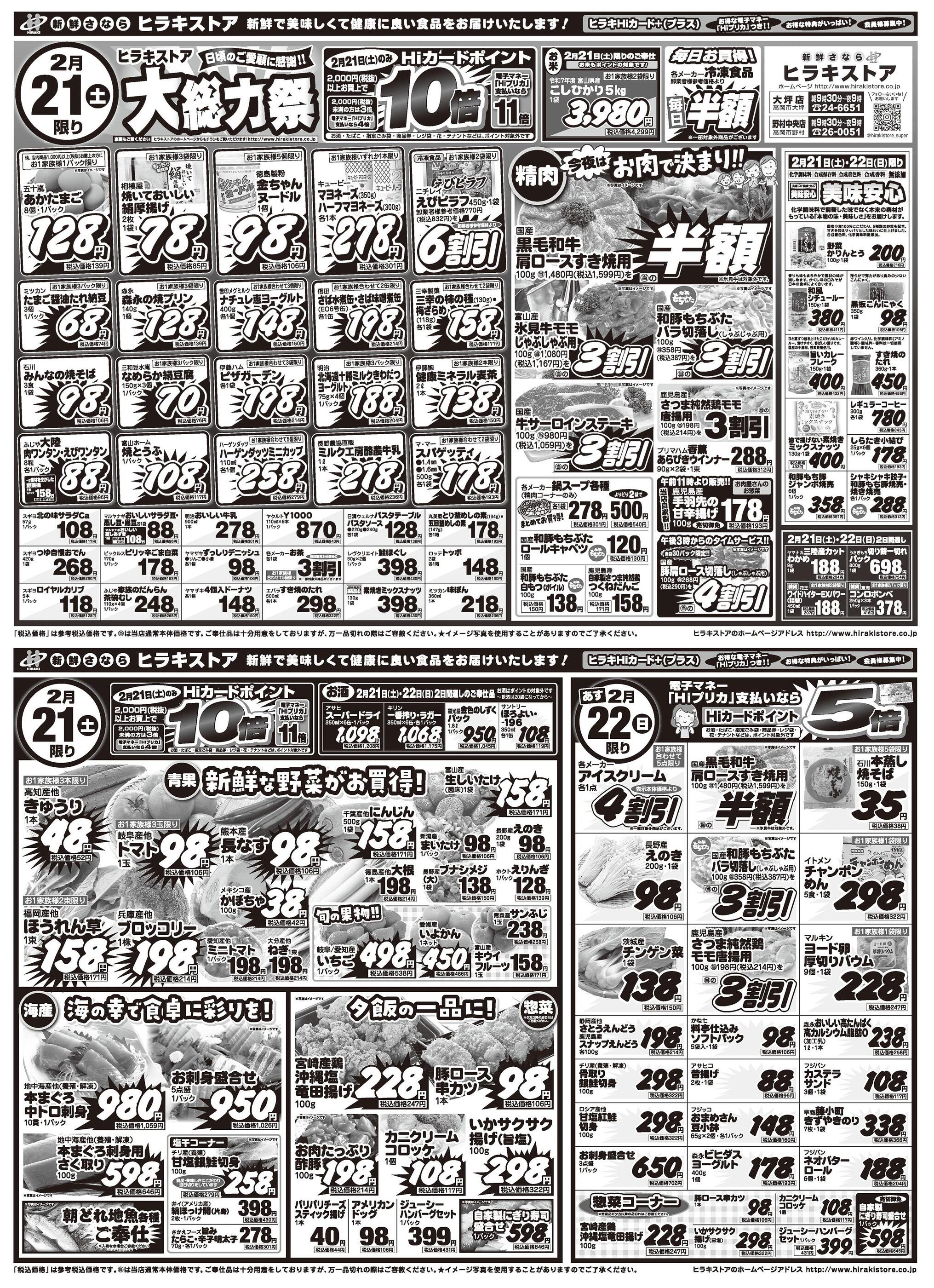 ヒラキストア 野村中央店今週のチラシ(2026年2月16日〜2月22日)