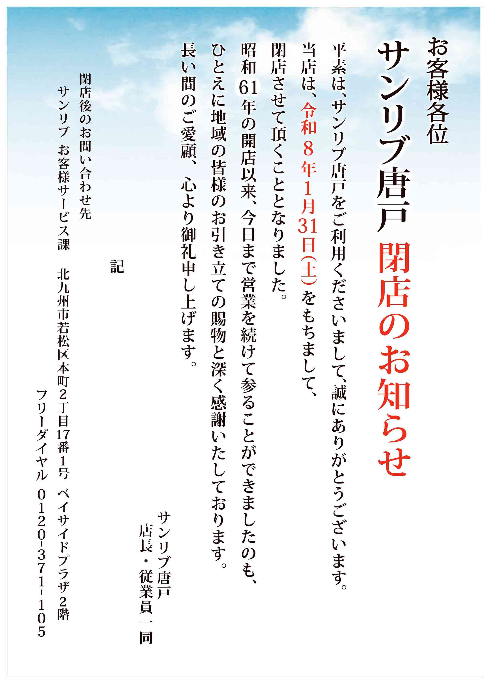 サンリブ唐戸店2026-01-27更新