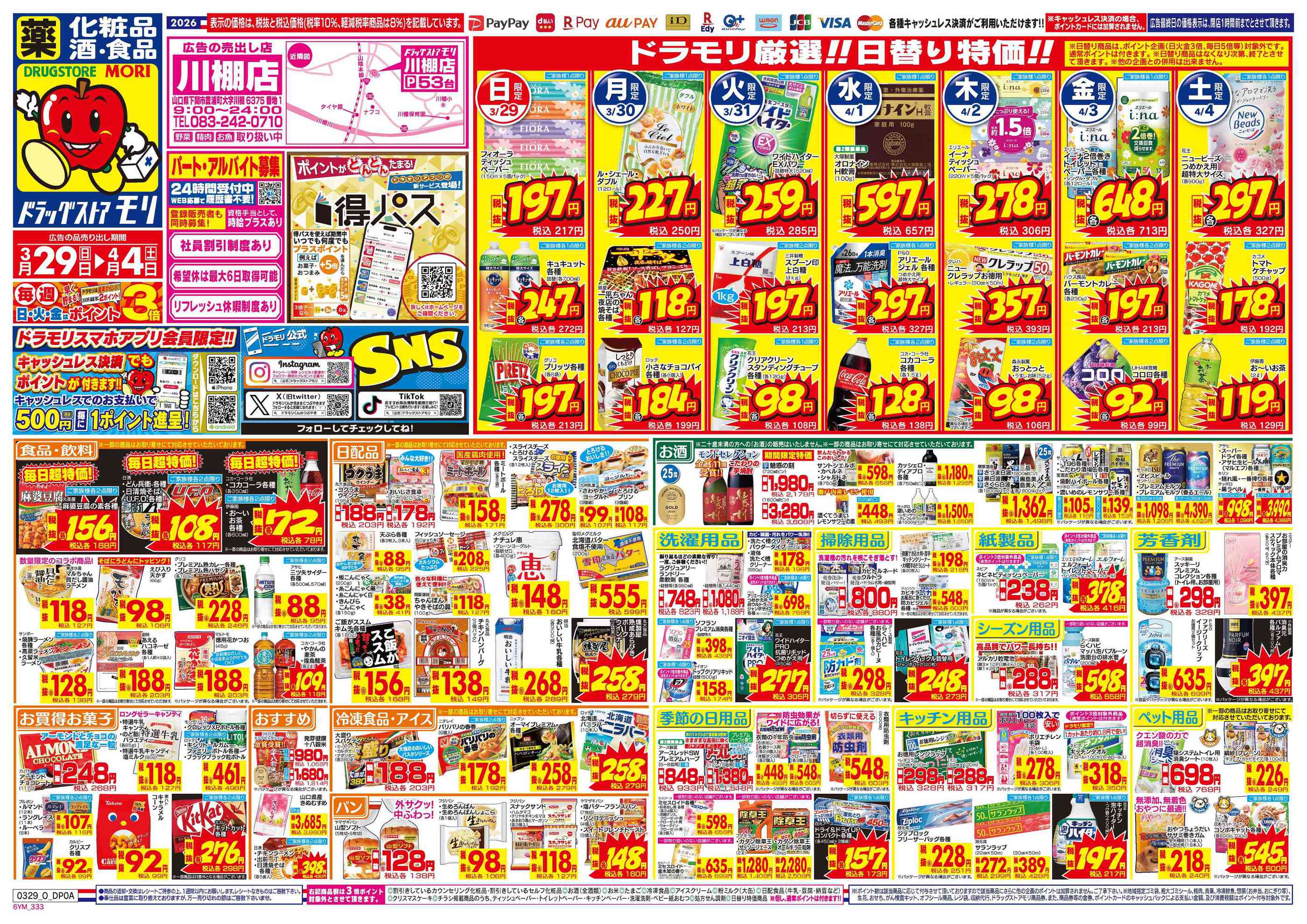 ドラッグストアモリ川棚店今週のチラシ(2026年3月30日〜4月5日)