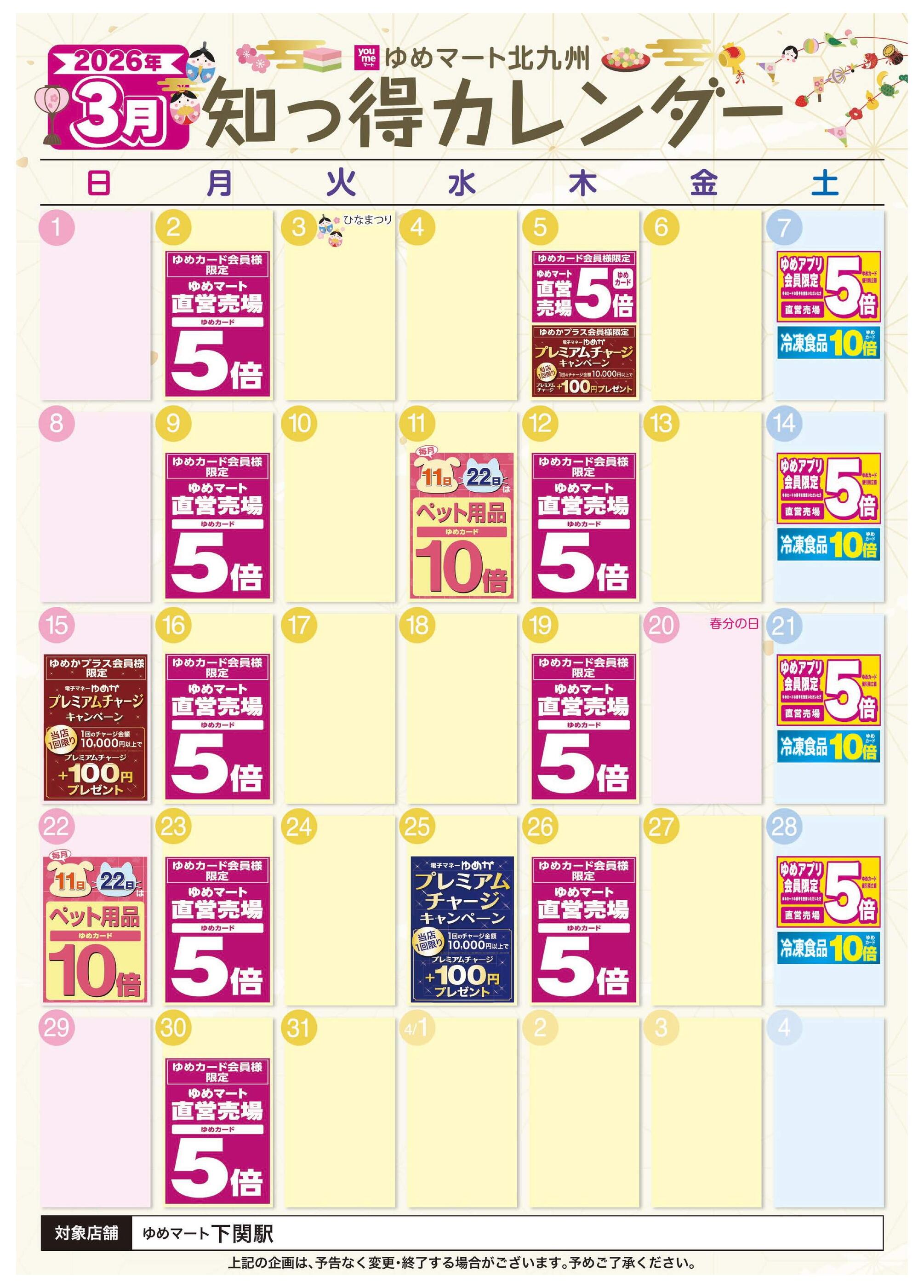 ゆめマート下関駅今週のチラシ(2026年2月23日〜3月1日)